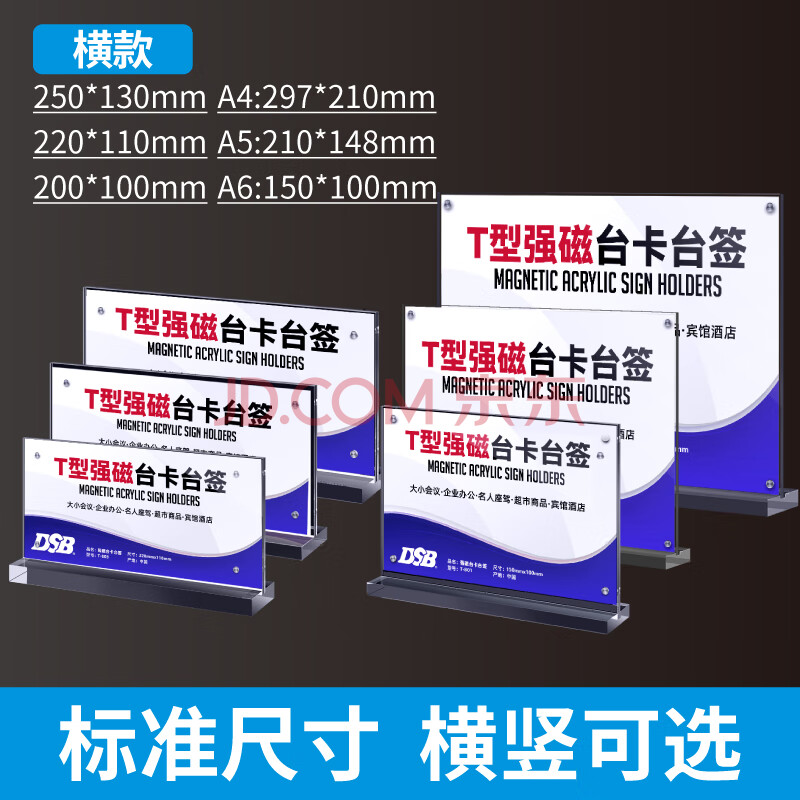商品相册:DSB(迪士比)桌牌亚克力T型姓名牌强磁台卡台签展示牌资料立牌席卡卡座牌 200mm*100mm 横款T-802第