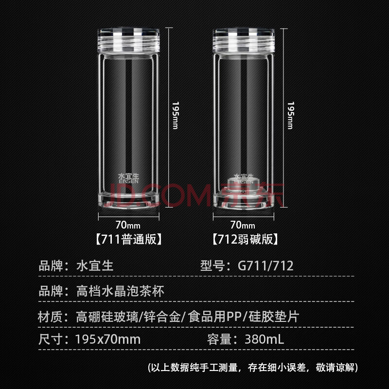 商品相册:水宜生玻璃杯双层隔热泡茶杯男女士高档商务办公杯水晶杯耐高温380ML第