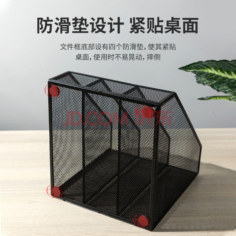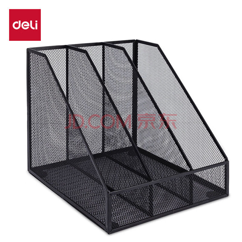 商品相册:得力(deli)三联金属桌面文件框栏书立架 办公室桌面档案收纳盒多层资料架子网状镂空文件置物架 黑色78985第
