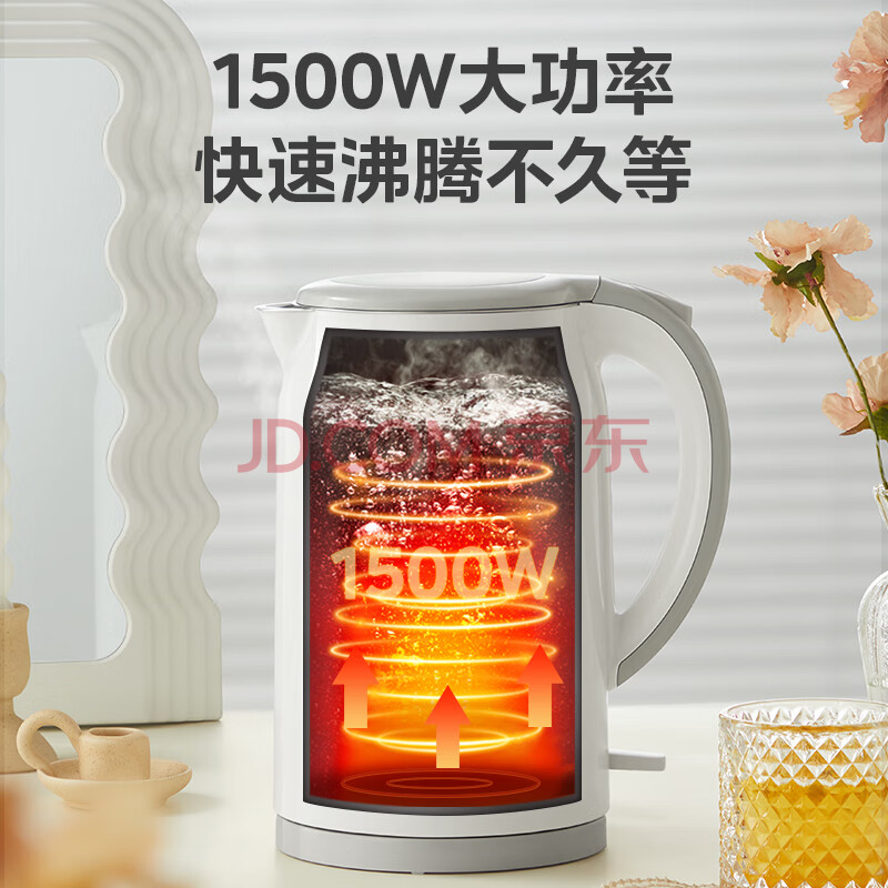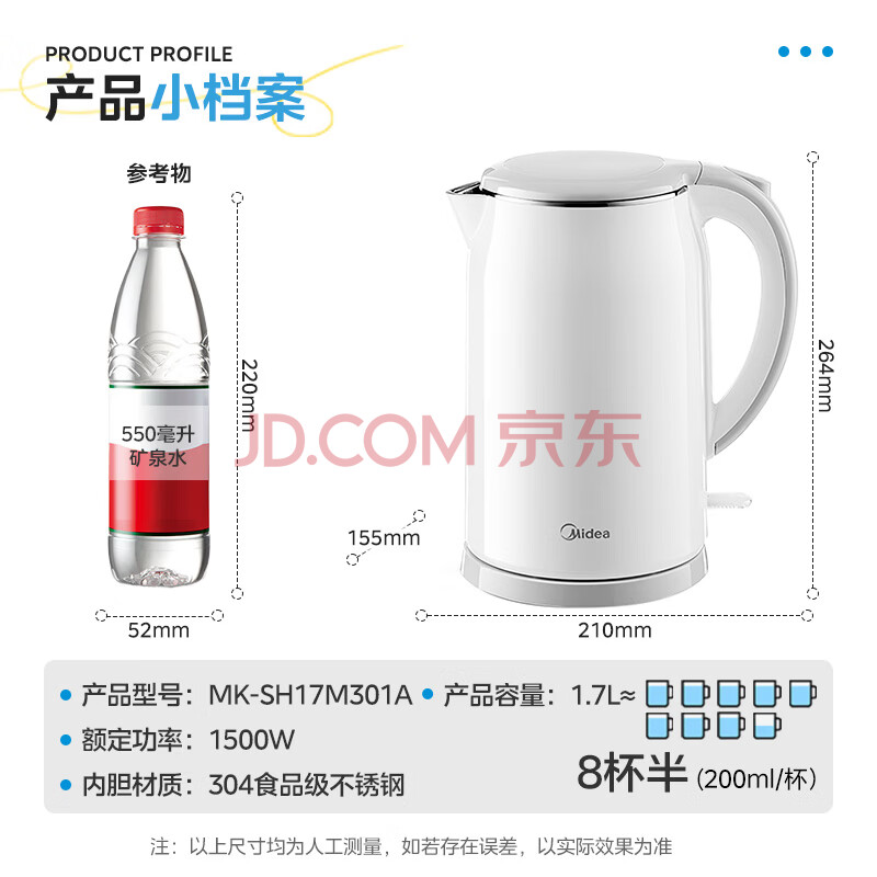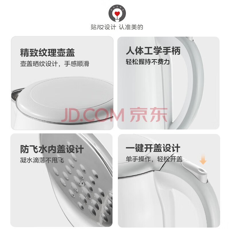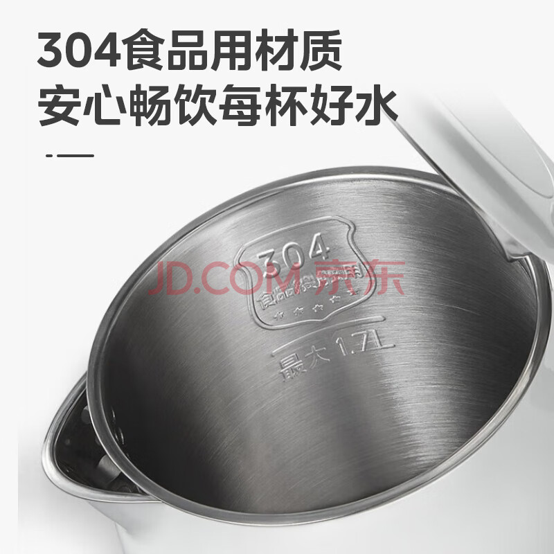 商品相册:美的(Midea)电热水壶家用烧水壶煮水壶食品级304不锈钢 1.7升大容量0涂层无缝内胆开水壶泡茶 MK-SH17M301第