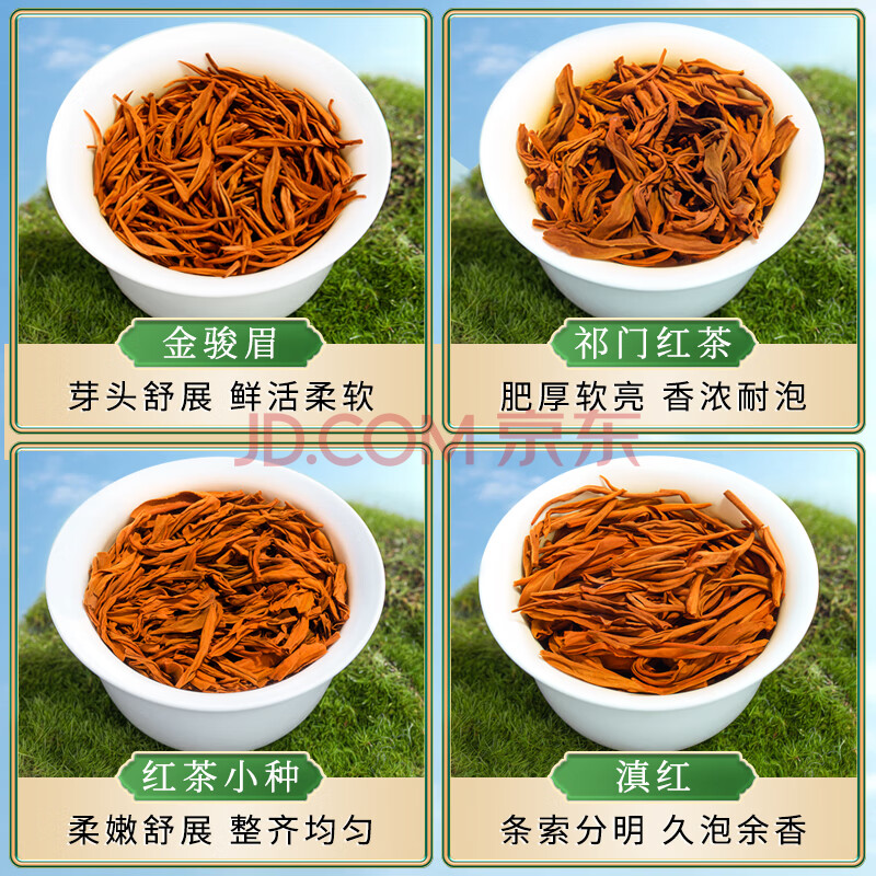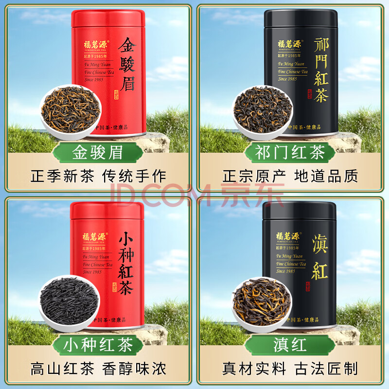 商品相册:福茗源四大红茶500g金骏眉正山小种滇红茶祁门红茶叶礼盒送长辈口粮茶第