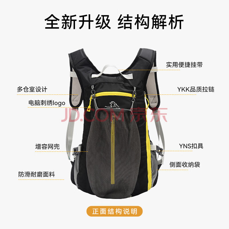 商品相册:伯希和(Pelliot)户外登山包徒步背包男女骑行越野跑双肩运动包防水105025020黑第