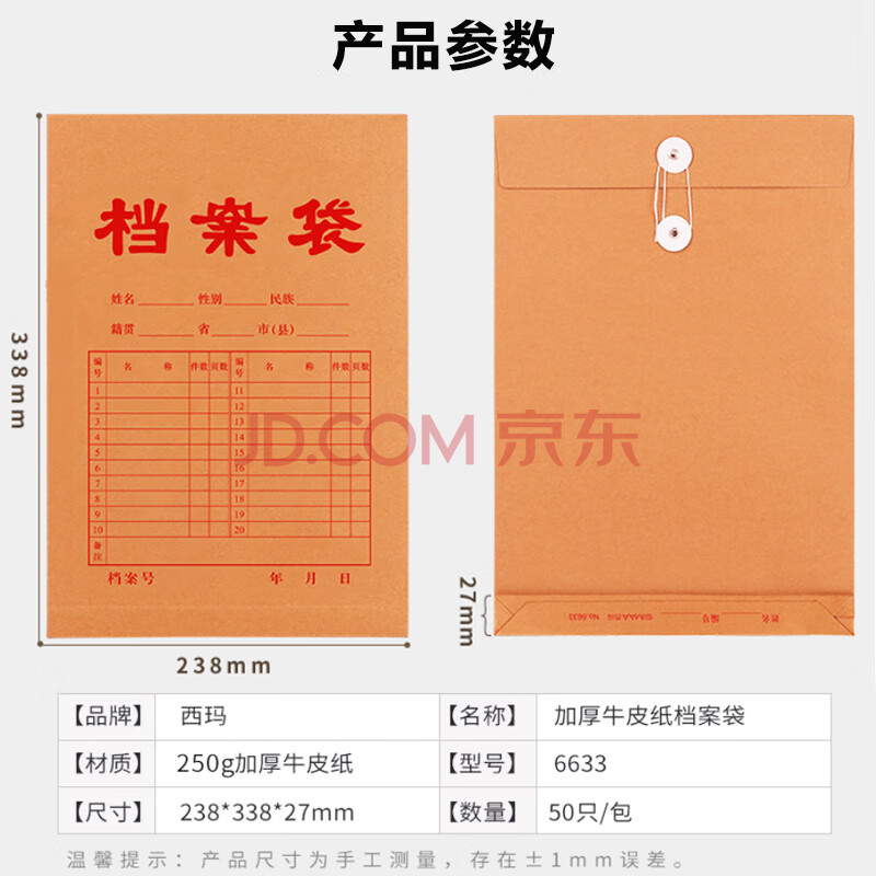商品相册:西玛(SIMAA)50只250g加厚牛皮纸档案袋 文件袋资料袋/投标档案袋 6633第