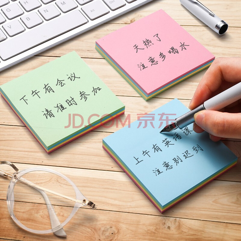 商品相册:金值1000张(10本装)4色简约便签纸便利贴76*76mm便签本N次贴记事贴便条可爱自粘留言本学生文具办公用品第