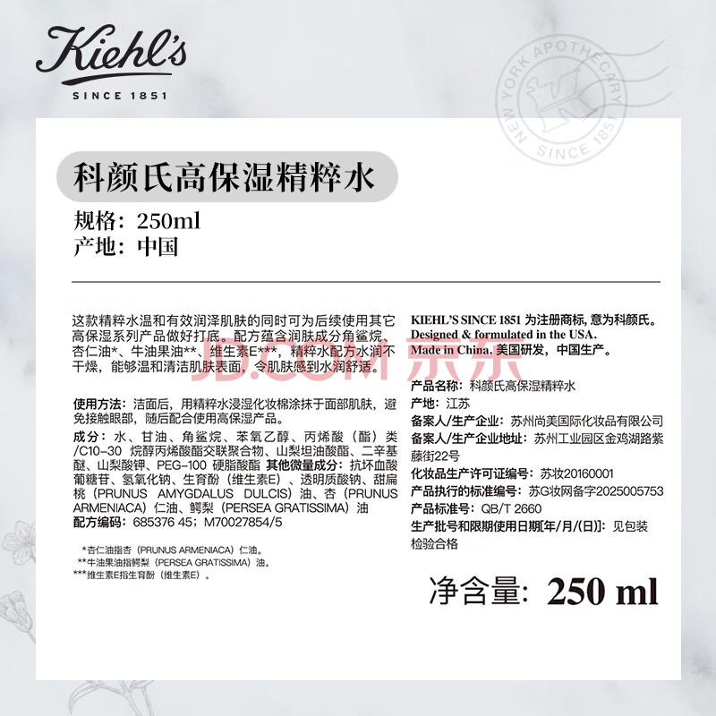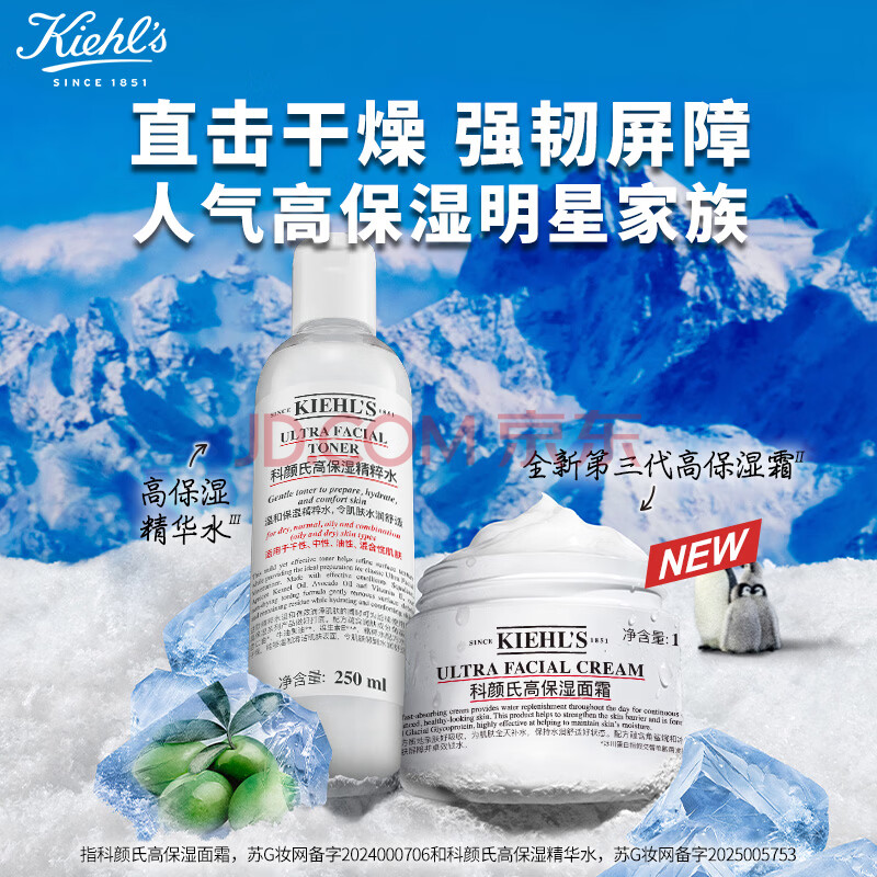 商品相册:科颜氏(Kiehl's)高保湿水250ml+面霜50ml护肤品补水保湿 生日礼物男女第