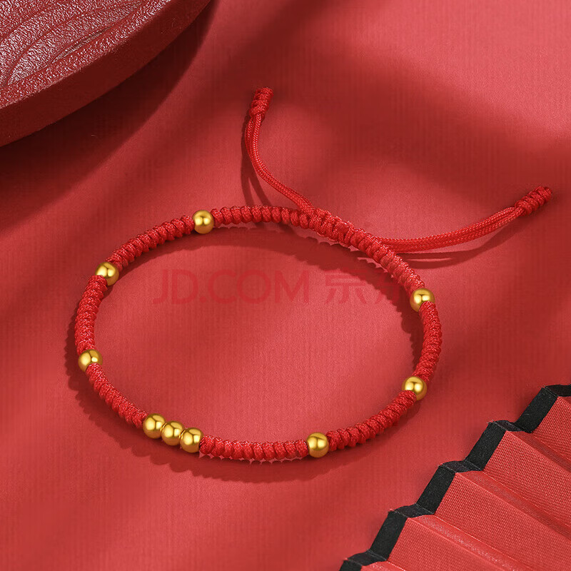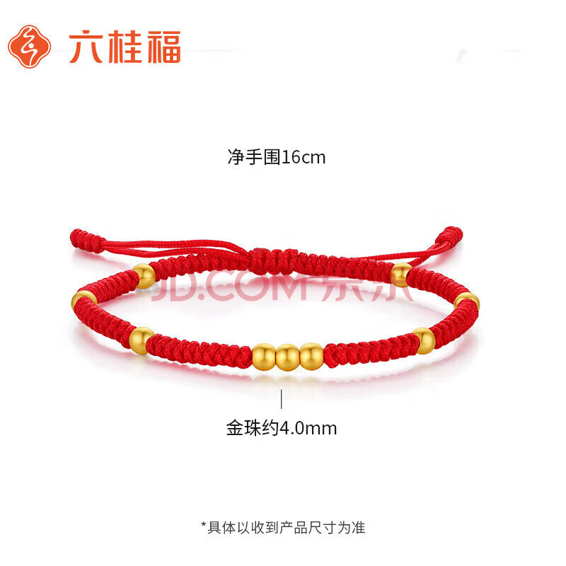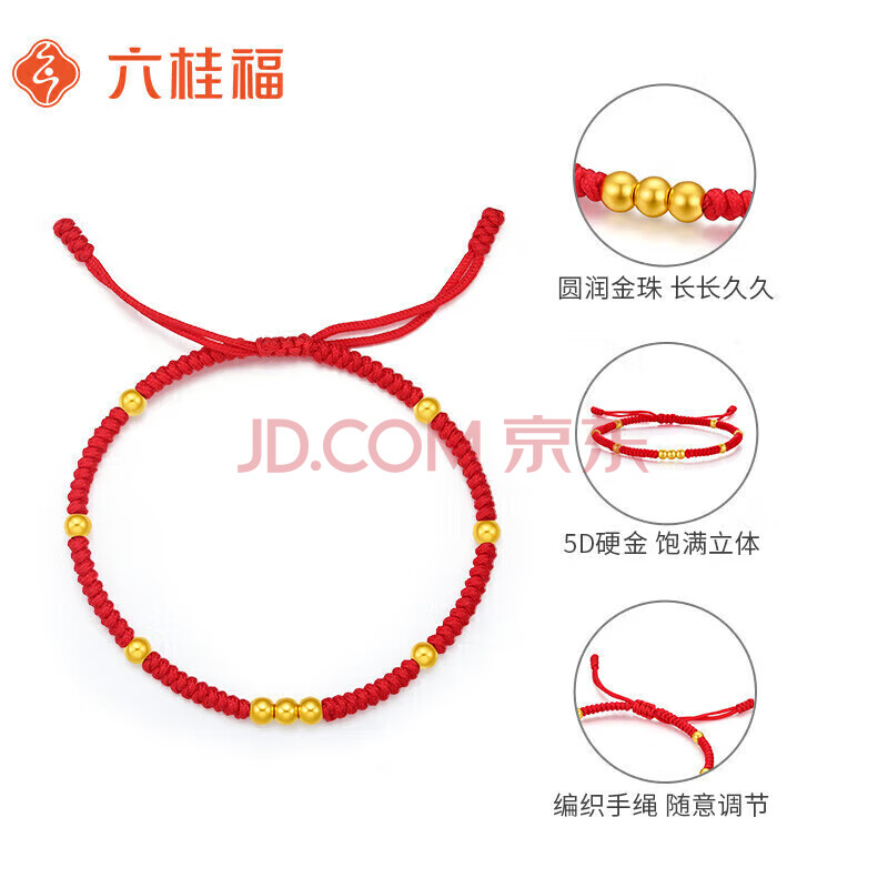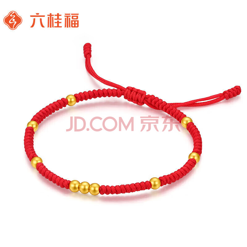 商品相册:六桂福珠宝 黄金转运珠相思5D硬足金小金珠红绳手绳手链FD0400044 0.4g第