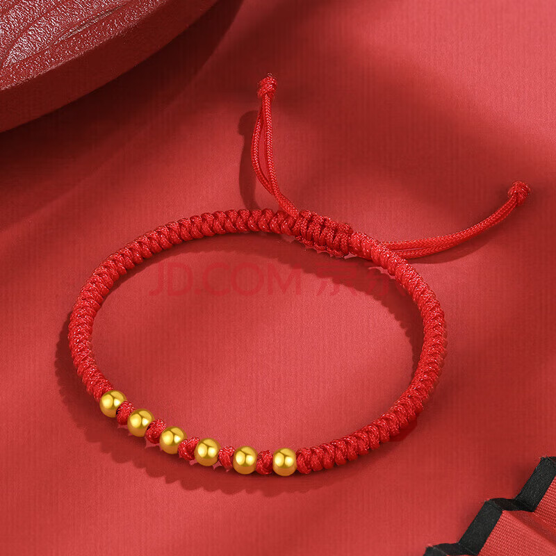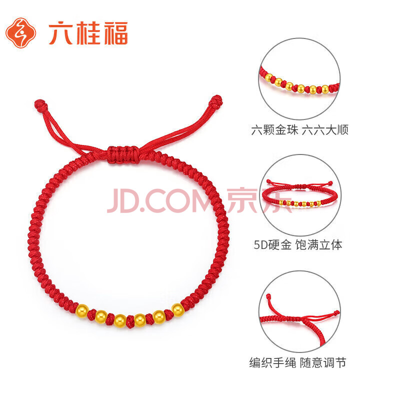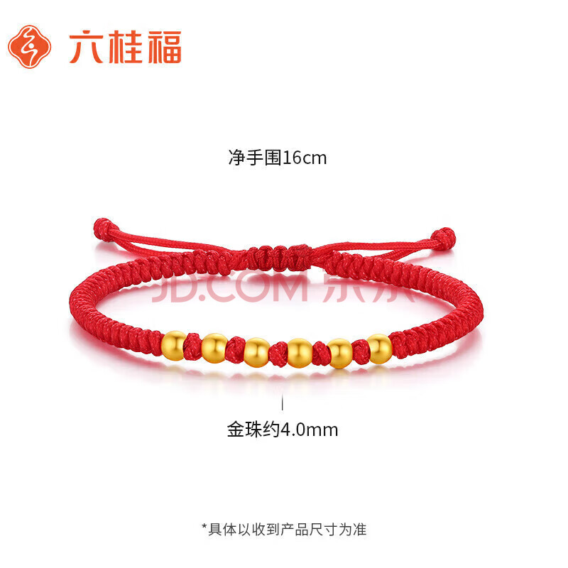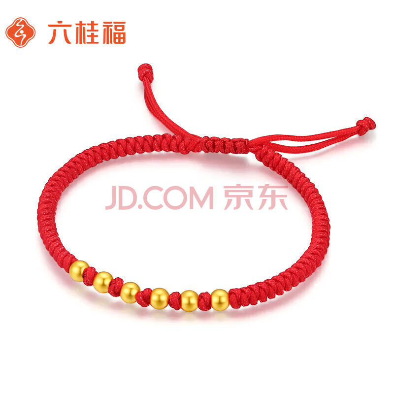 商品相册:六桂福珠宝 黄金转运珠 珠你好运 5D硬足金小金珠红绳FD0400045 0.28g第