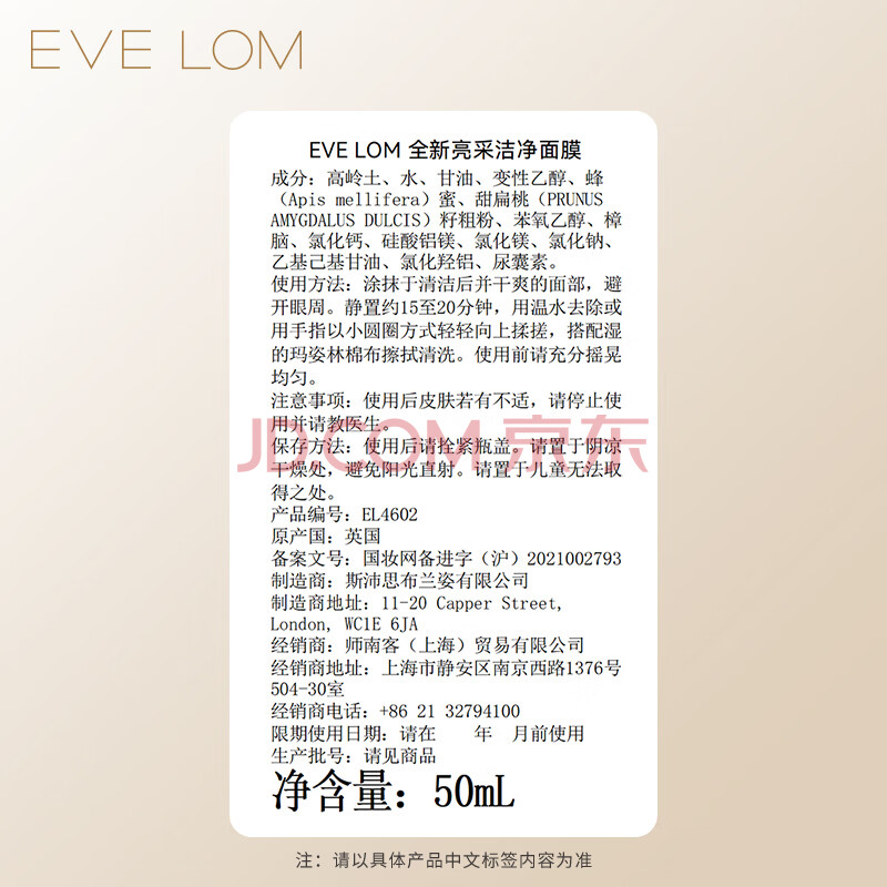 商品相册:EVE LOM伊芙珑亮采洁净面膜50ml 清洁舒缓急救保湿 护肤生日礼物送女生第