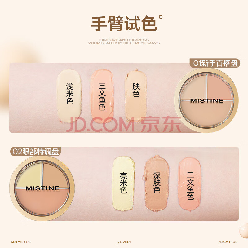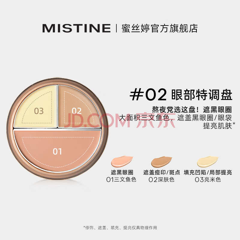 商品相册:Mistine蜜丝婷三色遮瑕膏遮瑕盘精准遮盖痘痘黑眼圈02生日礼物送女友第
