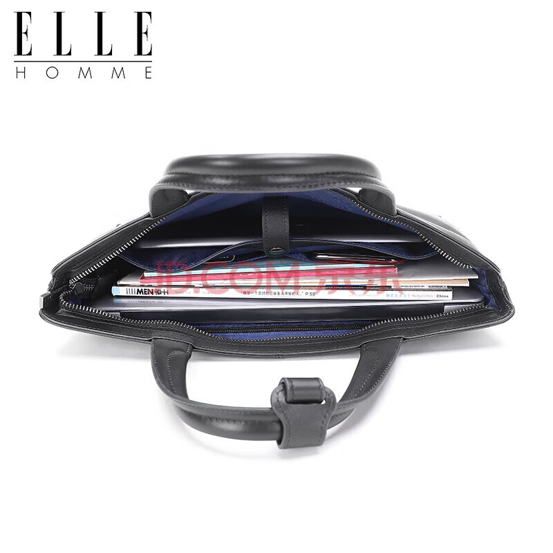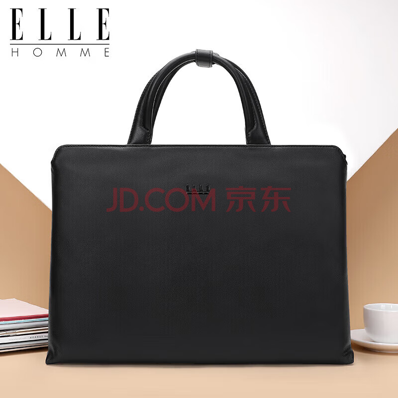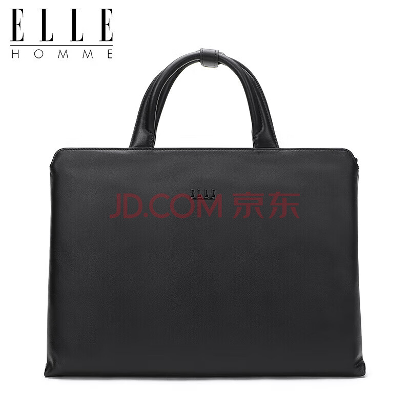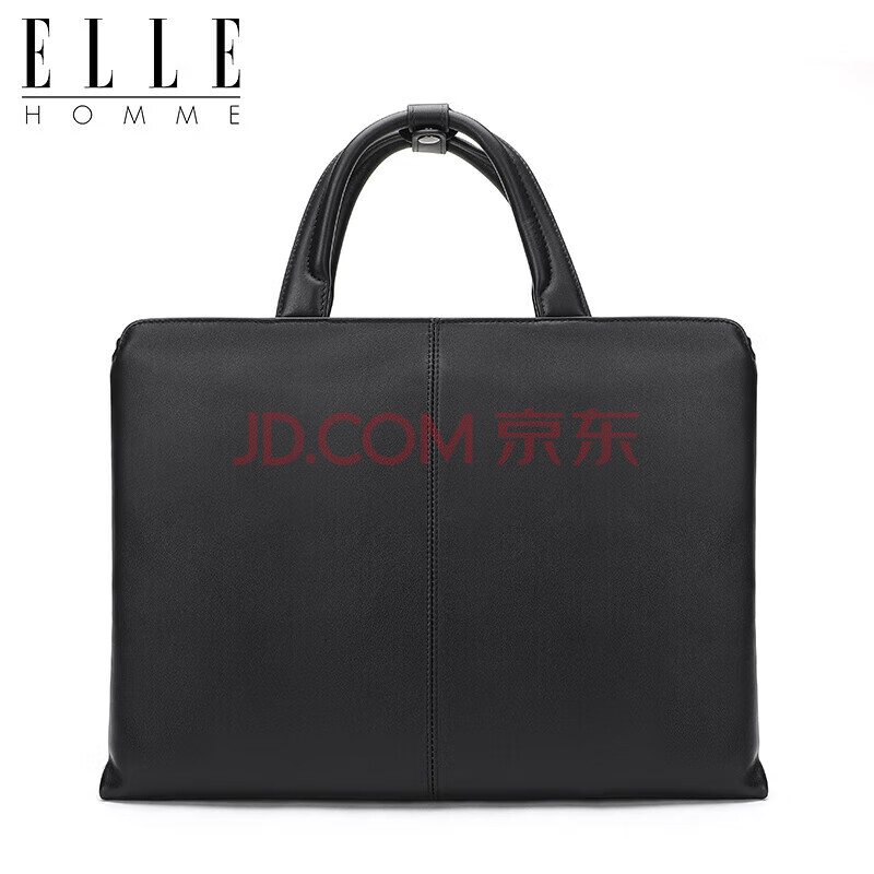 商品相册:ELLE HOMME 男士商务公文包时尚轻薄真皮手提包 横款潮流简约牛皮男包EA088204210黑色第