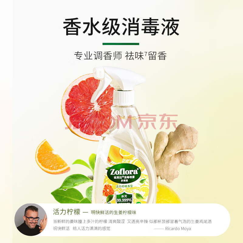 商品相册:祖芙拉香氛消毒液喷雾活力柠檬500ml杀菌袪味0酒精无刺激甲流感家庭清洁第