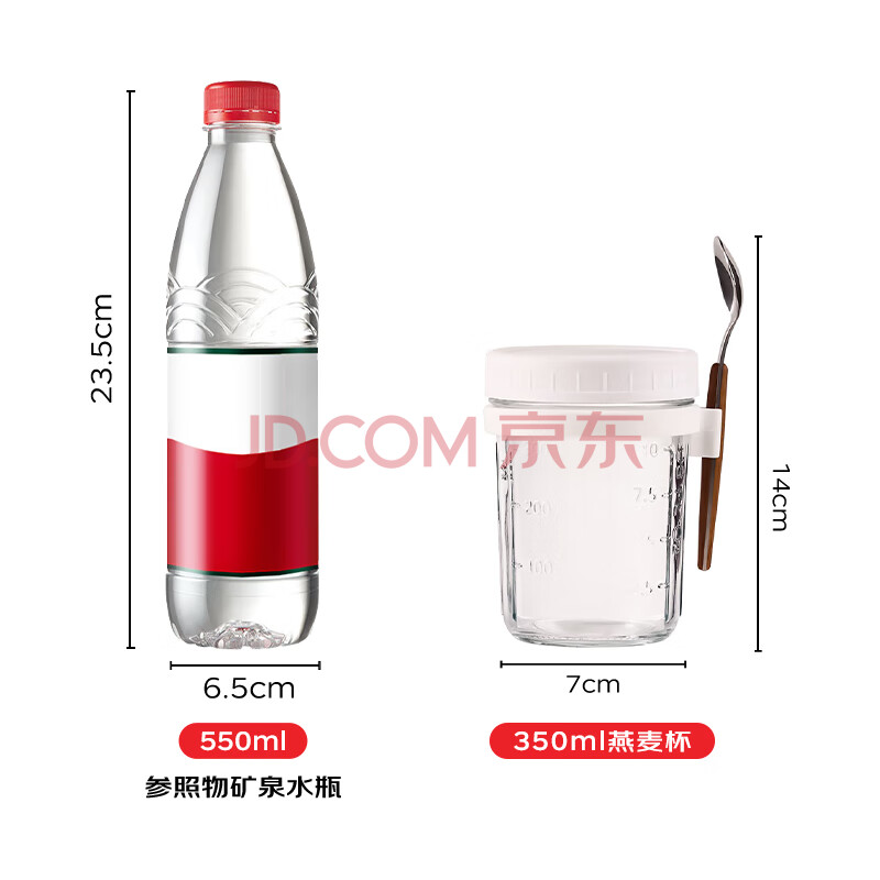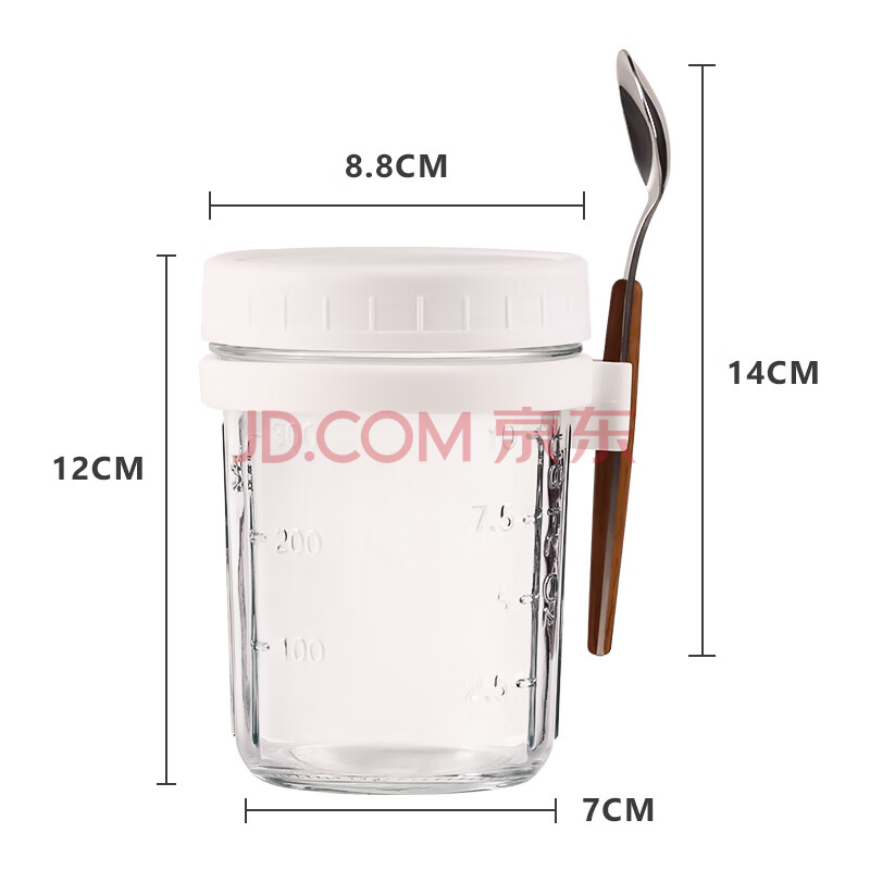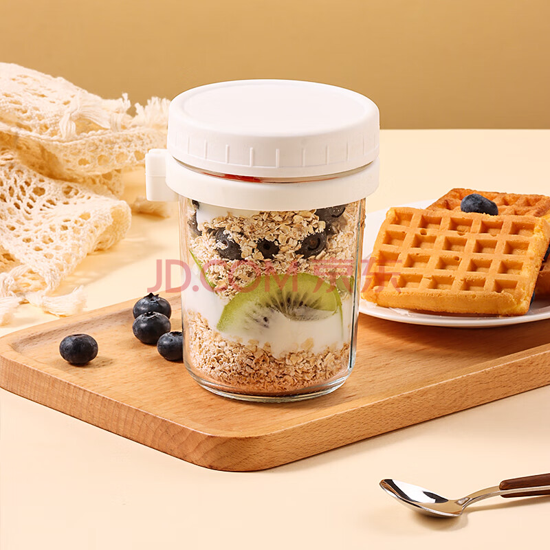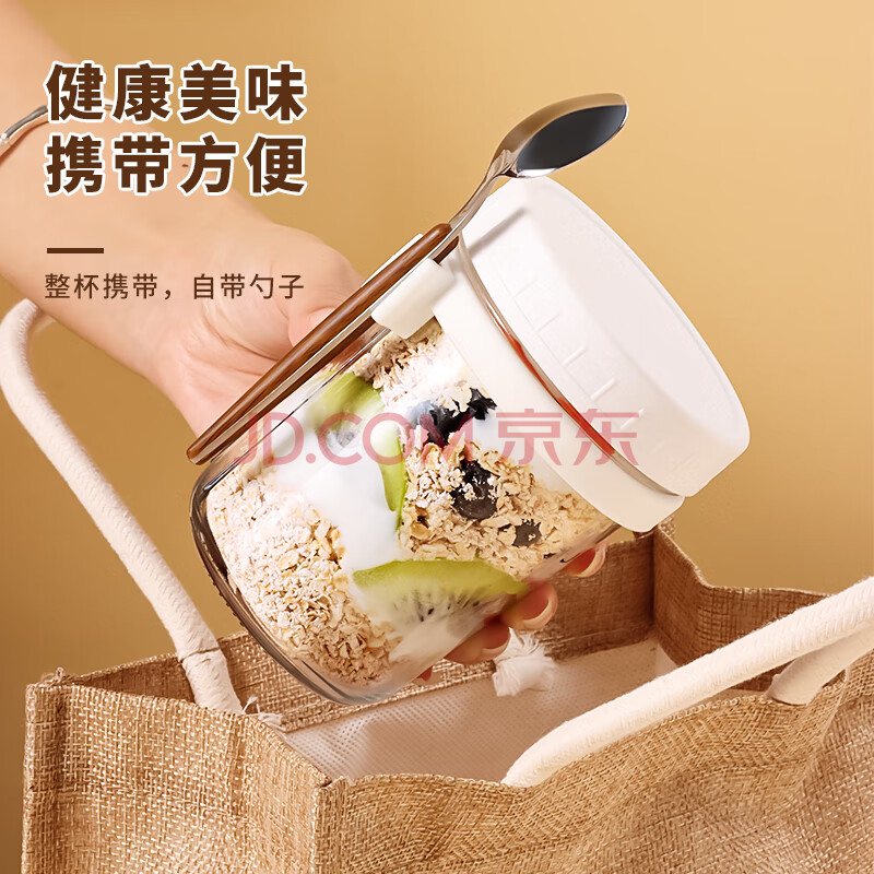 商品相册:拜杰隔夜燕麦杯杯子牛奶杯早餐杯酸奶杯梅森杯刻度水杯带盖带勺随行杯第