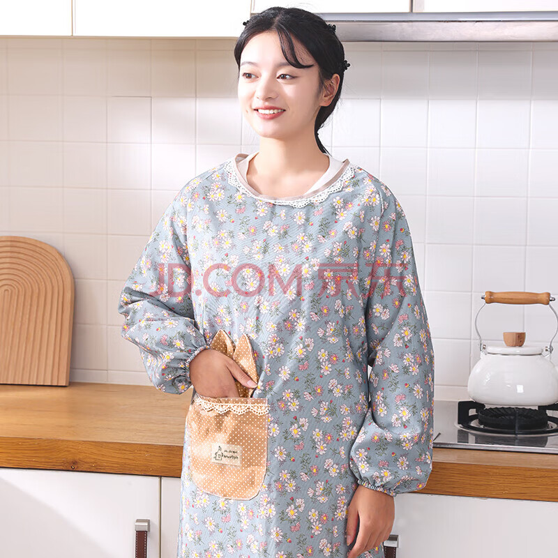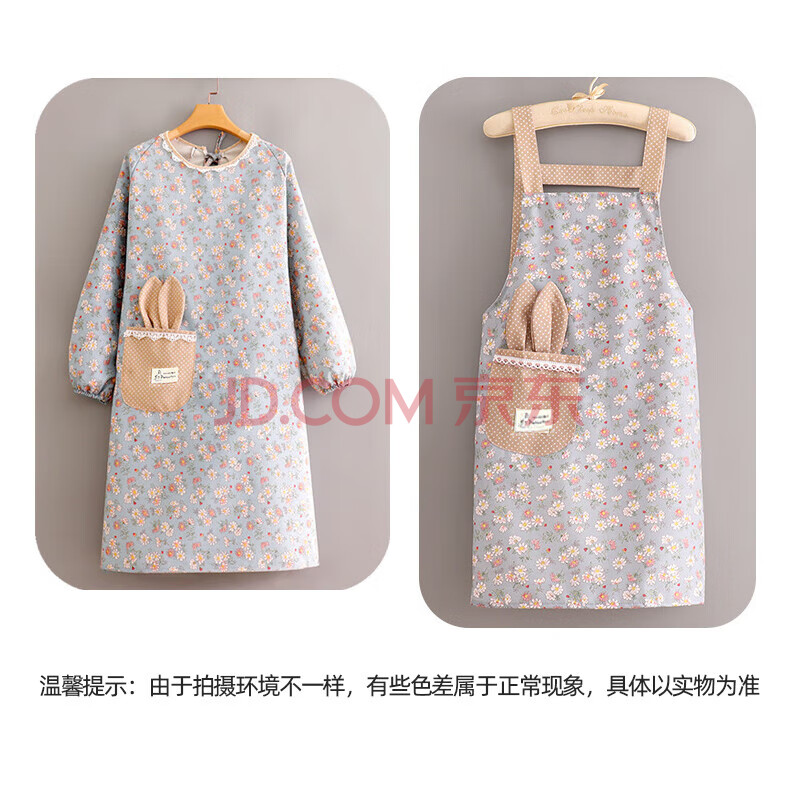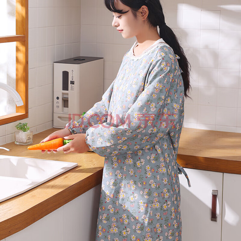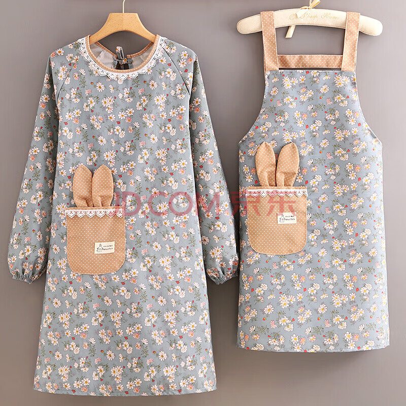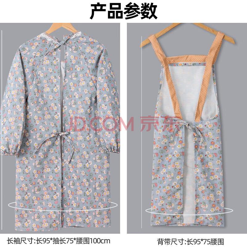 商品相册:迪普尔围裙两件套公主连袖厨房围裙做饭防油长袖围腰棉质围兜成人罩衣第