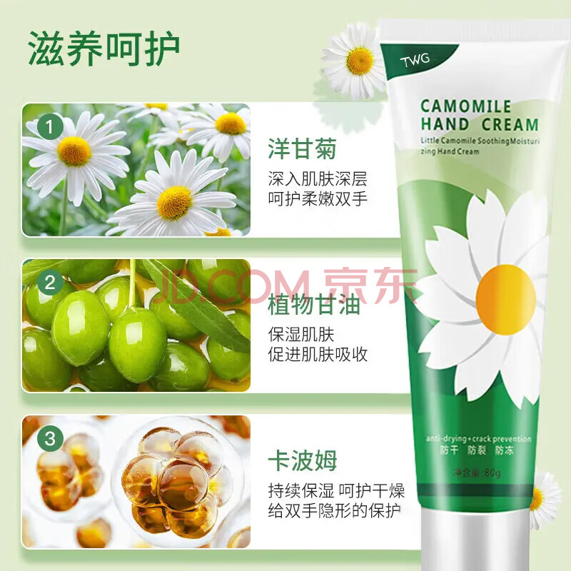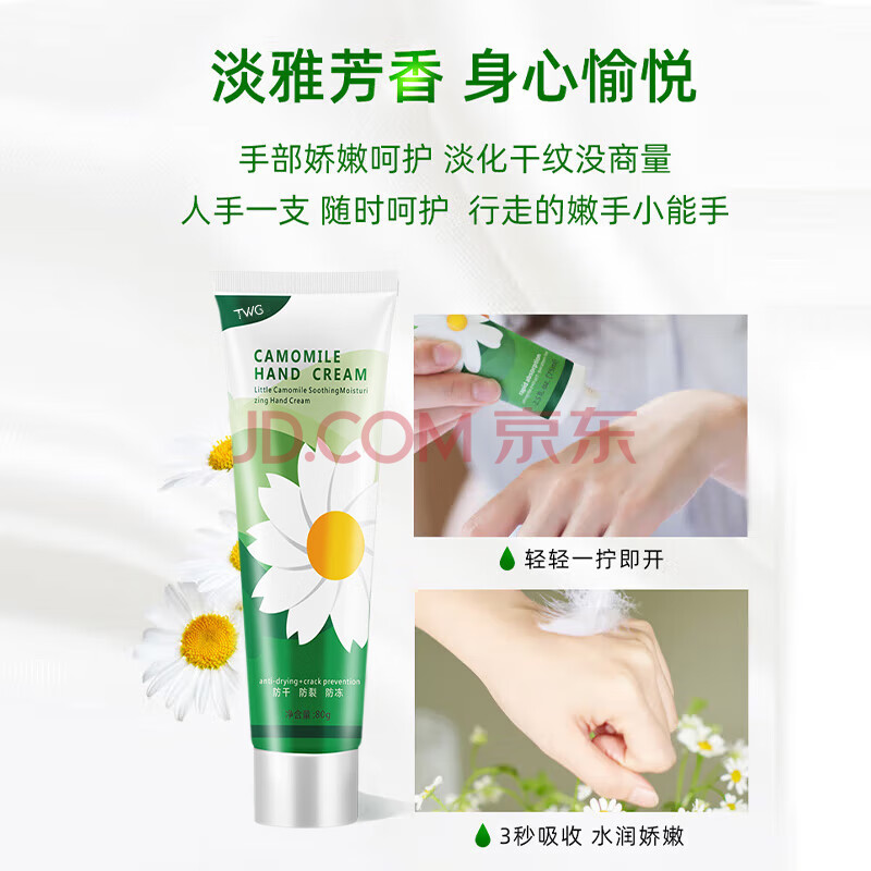 商品相册:TWG洋甘菊护手霜80g*4支手干燥粗糙手膜保湿补水手部小雏菊礼物第