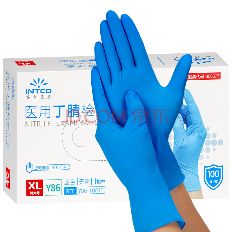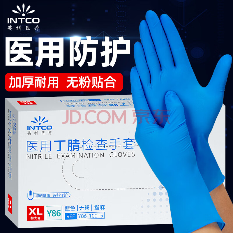 商品相册:英科医疗(INTCO)一次性手套丁腈手套100只特大码厨房家务耐用检查橡胶丁晴手套第