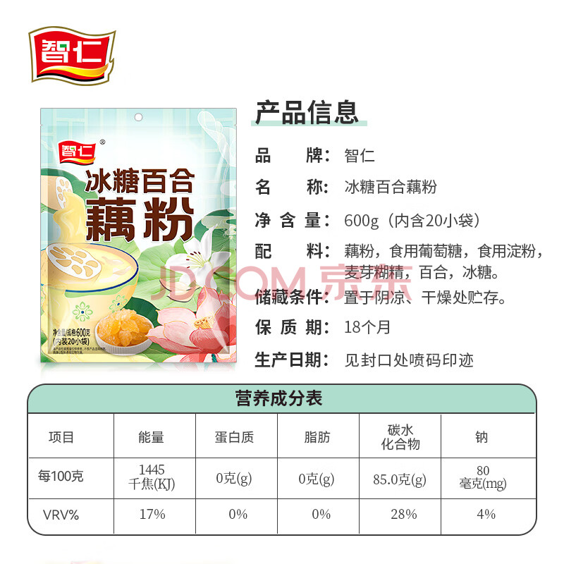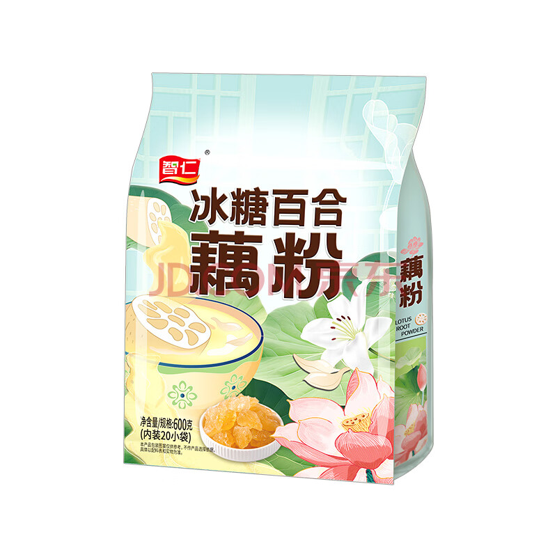 商品相册:智仁 冰糖百合藕粉 早餐莲藕粉 营养代餐粉速溶 独立小袋装600g第