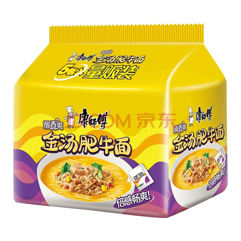 商品相册:康师傅 方便面 经典酸香爽金汤肥牛面五连包105g*5 泡面袋装 方便食品第