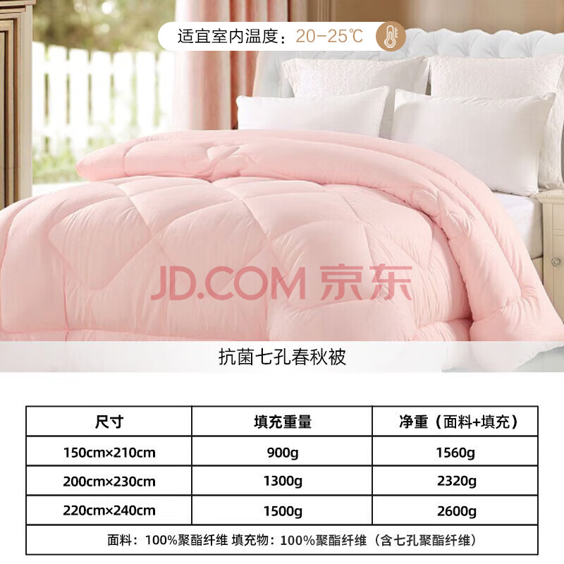 商品相册:水星家纺被子春秋被秋冬被子被芯抗菌纤维被褥约3.1斤150*210cm粉第