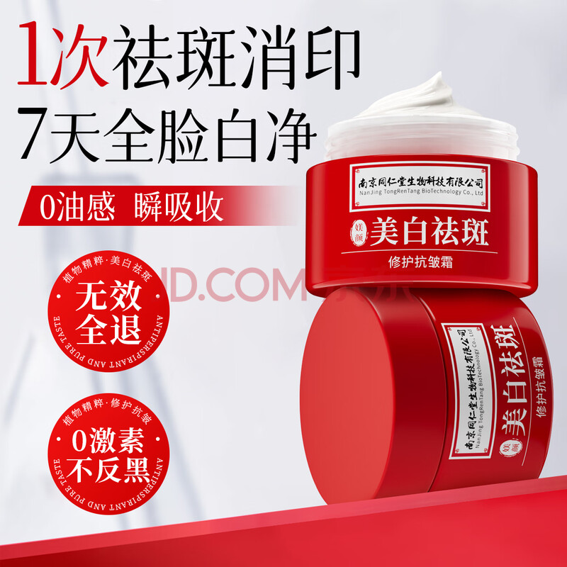 商品相册:南京同仁堂美白祛斑面霜去黄褐斑雀斑淡化色斑改善暗沉补水保湿男女圣诞礼物第