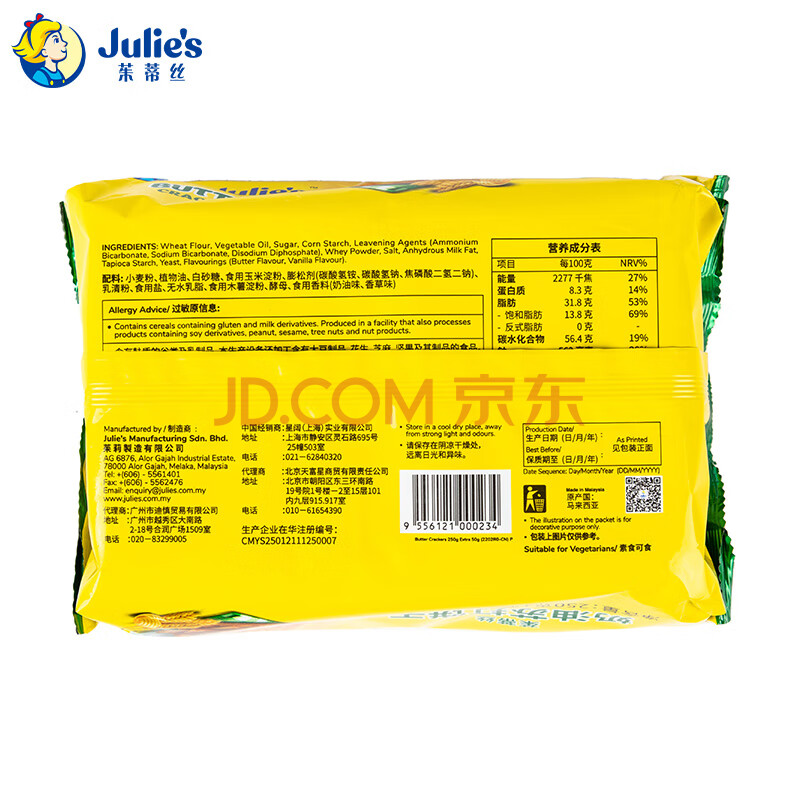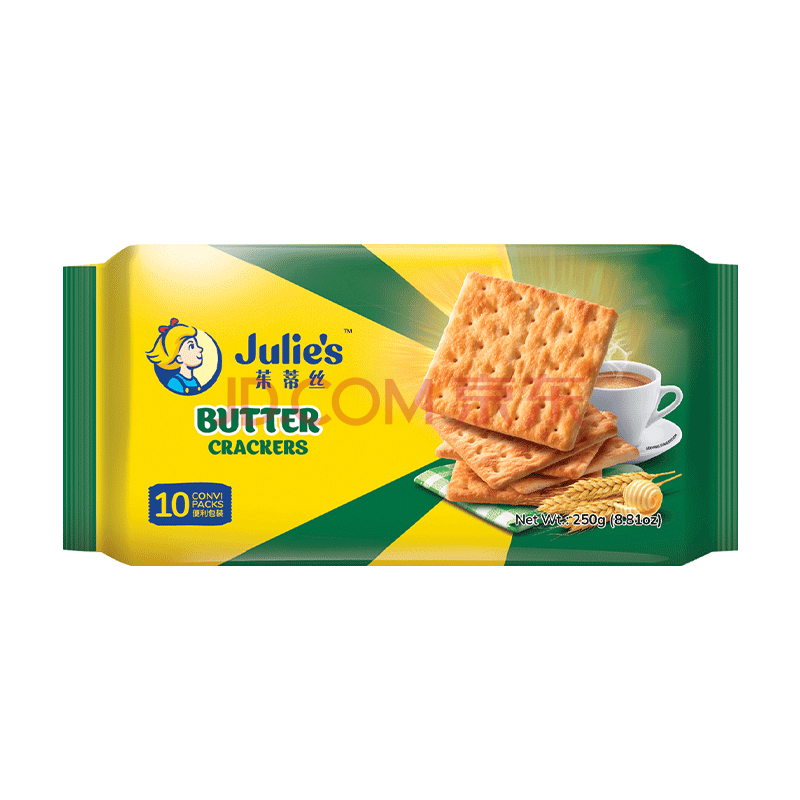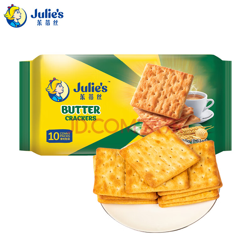 商品相册:茱蒂丝Julie's 马来西亚进口奶油苏打饼干休闲零食早餐250克/袋×2第1张/共3