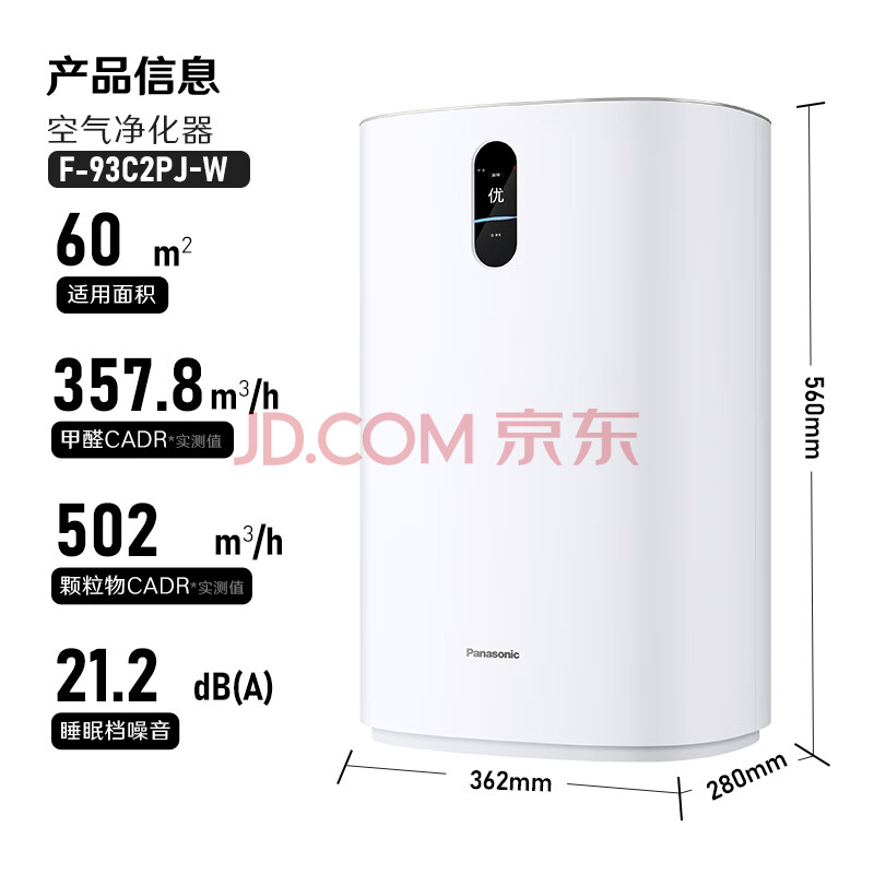 商品相册:松下(Panasonic)家用空气净化器除甲醛卫健委备案空气消毒机 除菌除异味智能托管 净化机 93C2PJ礼品第
