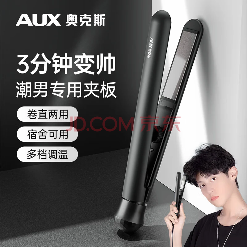 商品相册:奥克斯(AUX)夹板男生用卷发棒宿舍小功率夹发板烫发夹男士专用卷直发两用迷你小夹板不伤发直板夹【出行必备】第1张/共6