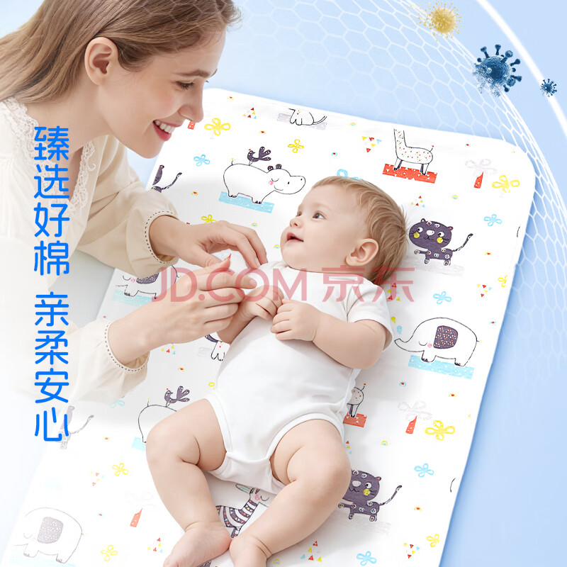 商品相册:安可新隔尿垫可水洗婴幼儿纯棉宝宝可洗隔尿垫床上新生儿产褥垫80*100cm第