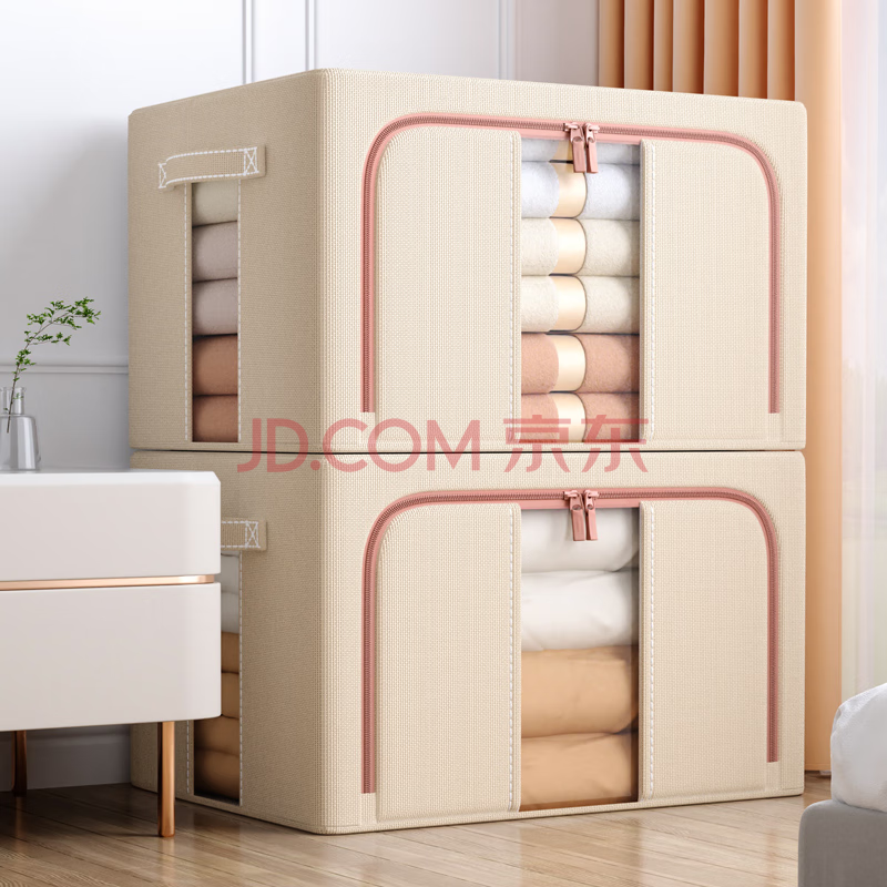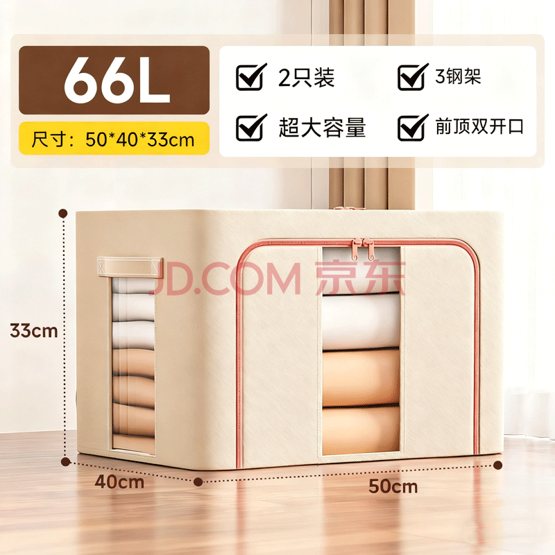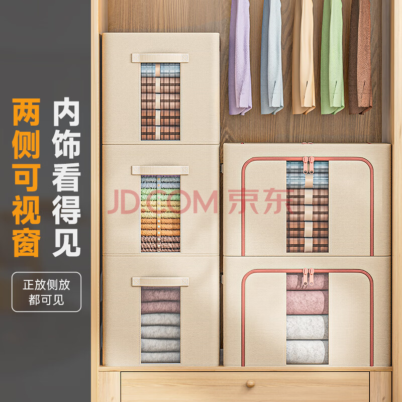 商品相册:佳帮手收纳箱布艺衣服衣物被子衣柜整理储物箱百纳箱收纳盒子 66L2只装第