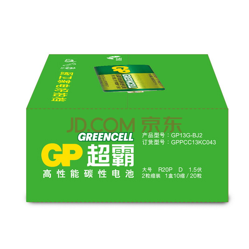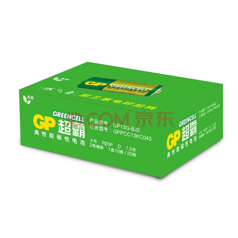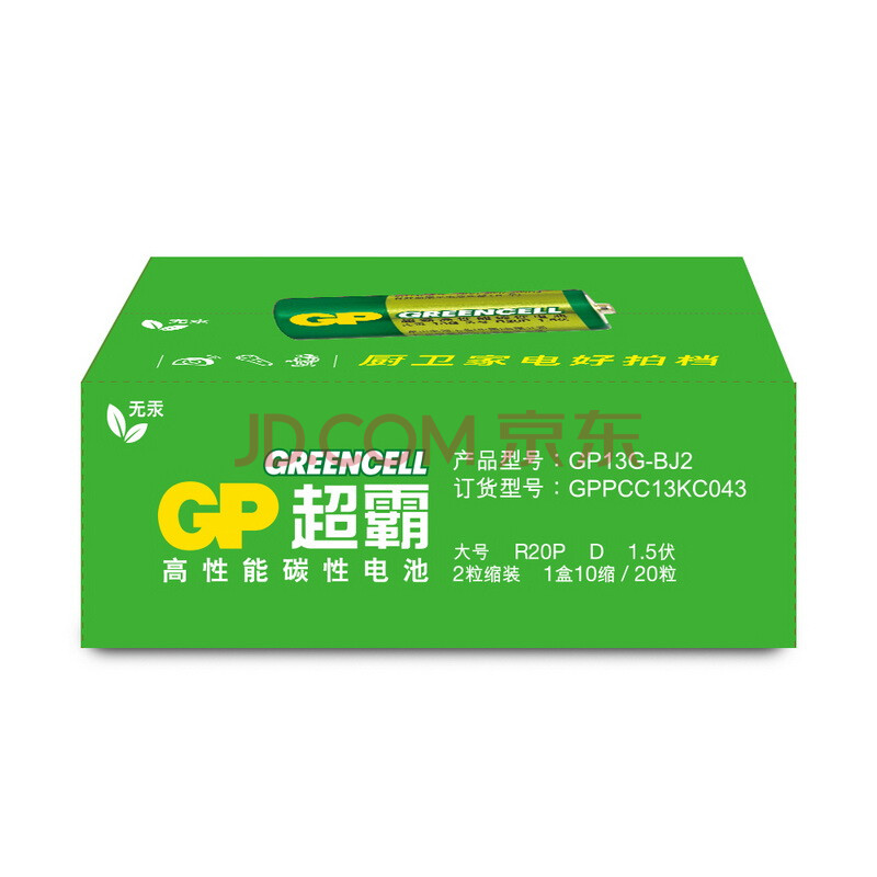 商品相册:超霸(GP)1号大号电池20粒碳性干电池适用于燃气灶/手电筒/热水器/手电筒等R20P 商超同款第