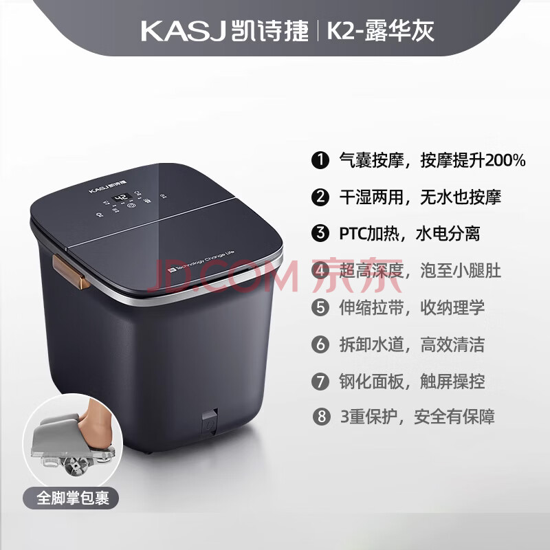 商品相册:凯诗捷(KASJ)足浴盆 电动按摩泡脚桶 气囊按摩 乾湿两用 恒温家用洗脚盆 K2 露华灰第