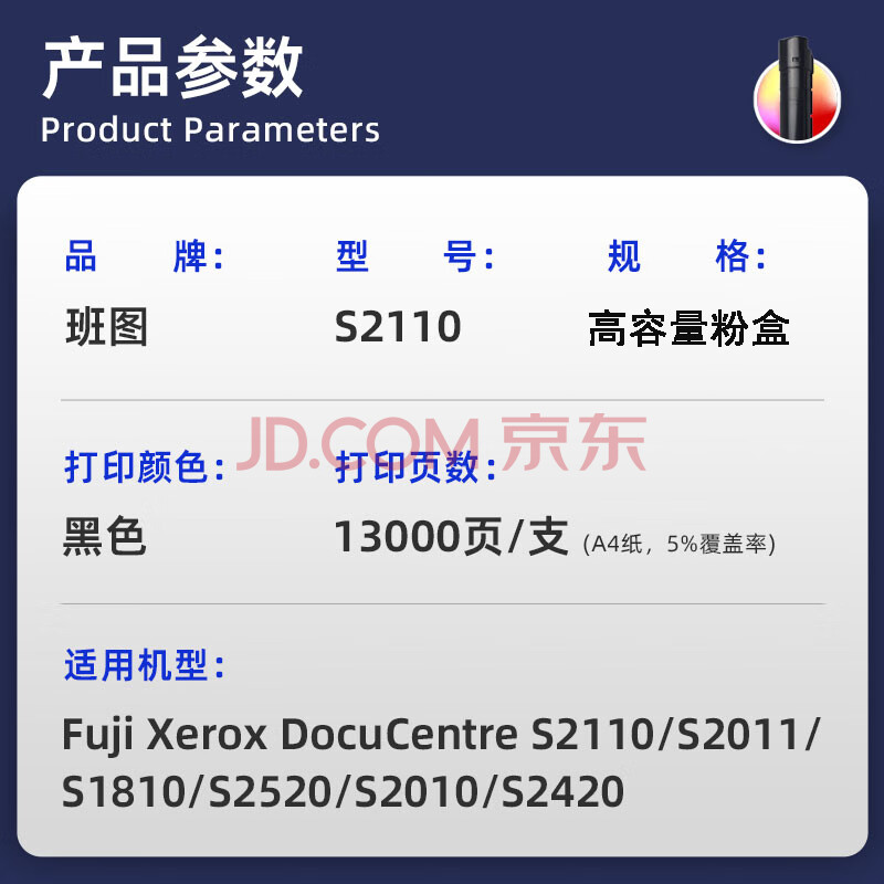 商品相册:班图S2110粉盒适用富士施乐S1810墨盒S2110NDA硒鼓S2011墨粉筒S2520 S2220 S2350打印复印机S2150n碳粉双支装第