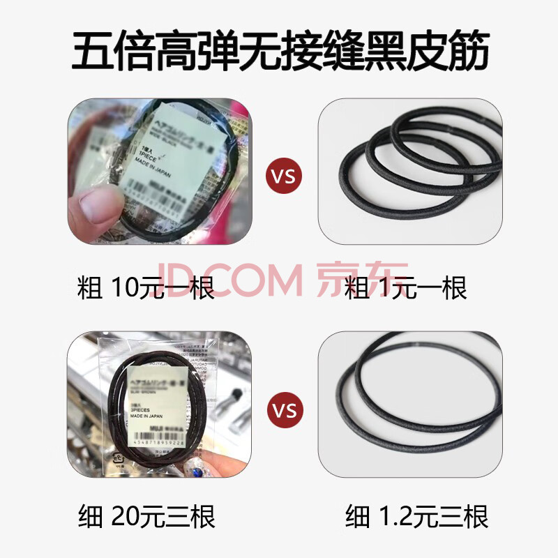 商品相册:向晚发绳100根高弹力头绳加粗皮筋头绳高马尾发绳女发圈女扎头发发绳第