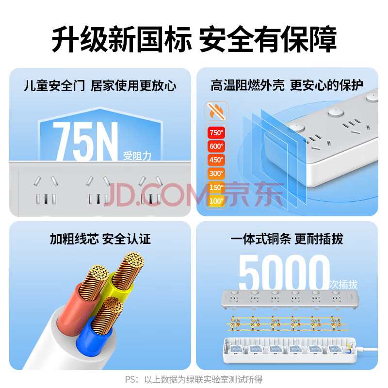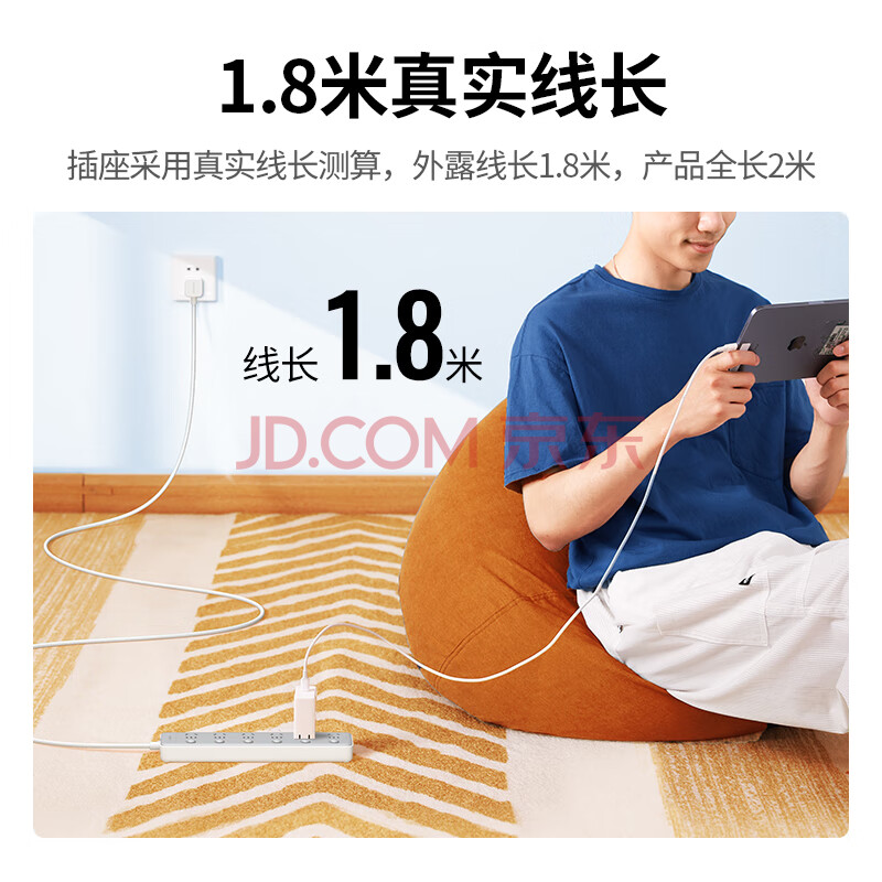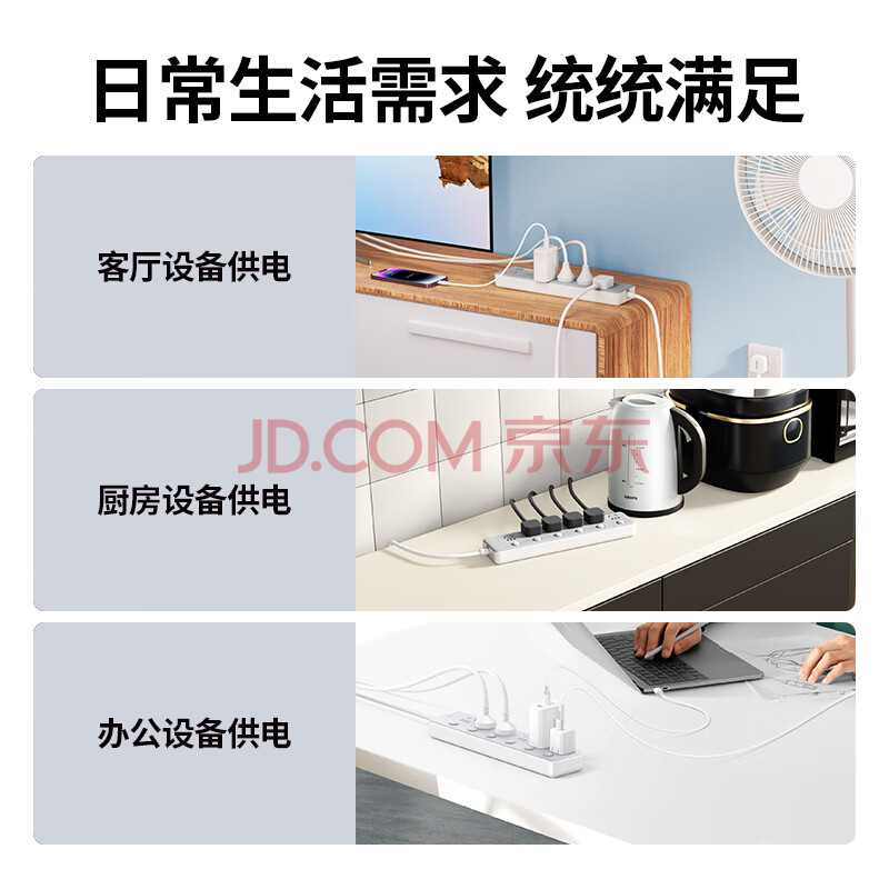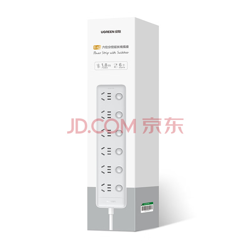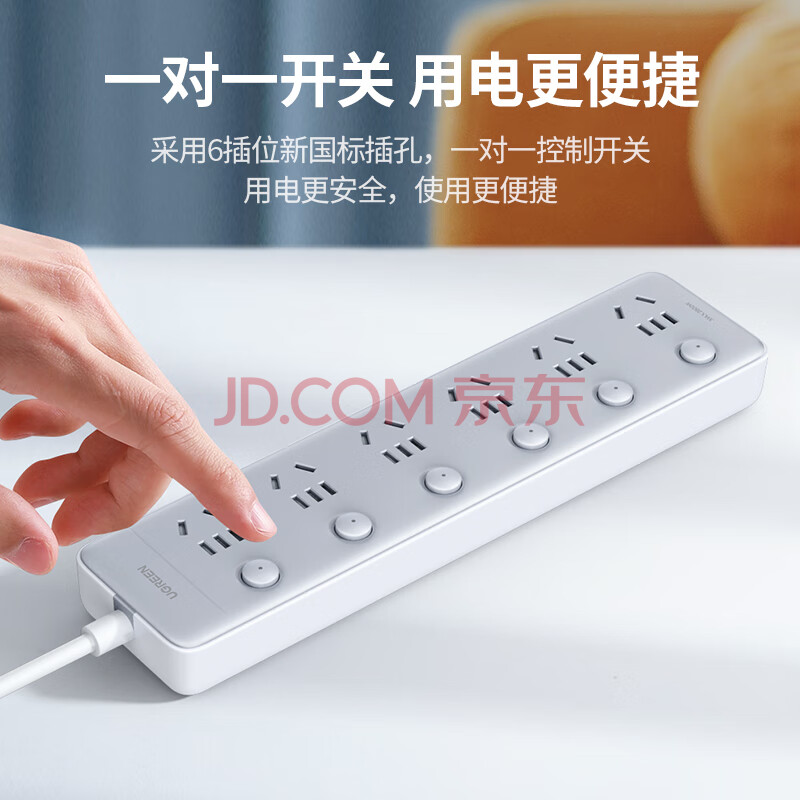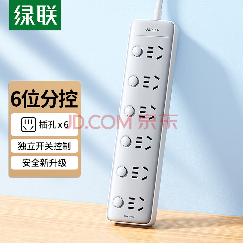 商品相册:绿联插排/插座/插线板/排插/插板/拖线板/接线板/桌面带线宿舍家用6位分控独立开关全长2米第