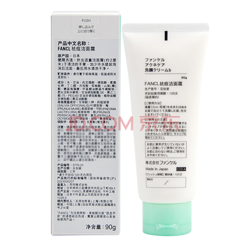 商品相册:芳珂(FANCL)祛痘洁面霜90g 控油抗痘清爽水润洗面奶 护肤品生日礼物送女友第