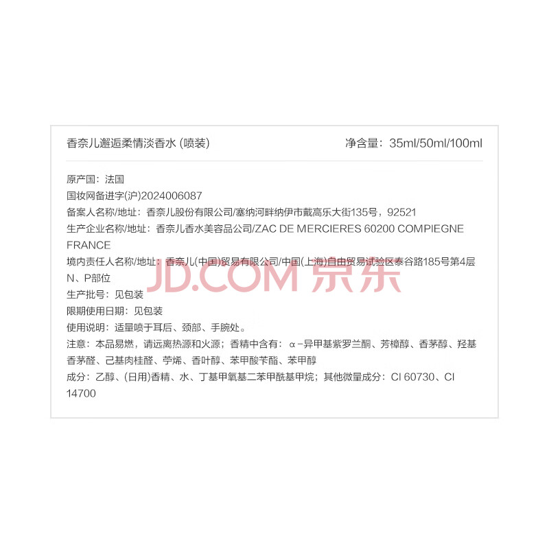 商品相册:香奈儿(Chanel)邂逅柔情淡香水(喷装)100ml礼盒粉邂逅花香调生日礼物送女友老婆第