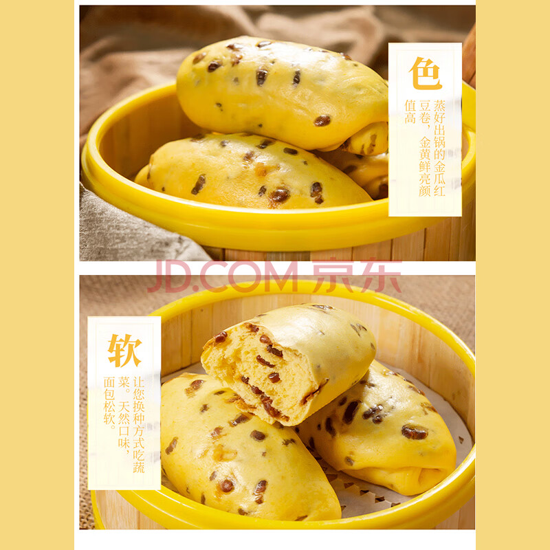 商品相册:悦味纪 手工金瓜红豆卷500g*2包20只 南瓜红豆卷花卷馒头早餐半成品速食第