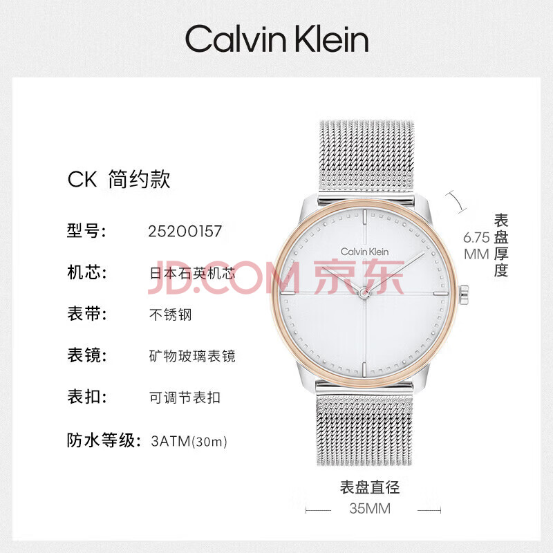 商品相册:Calvin KleinCK手表简约款中性石英腕表情侣手表生日新年礼物25200157第
