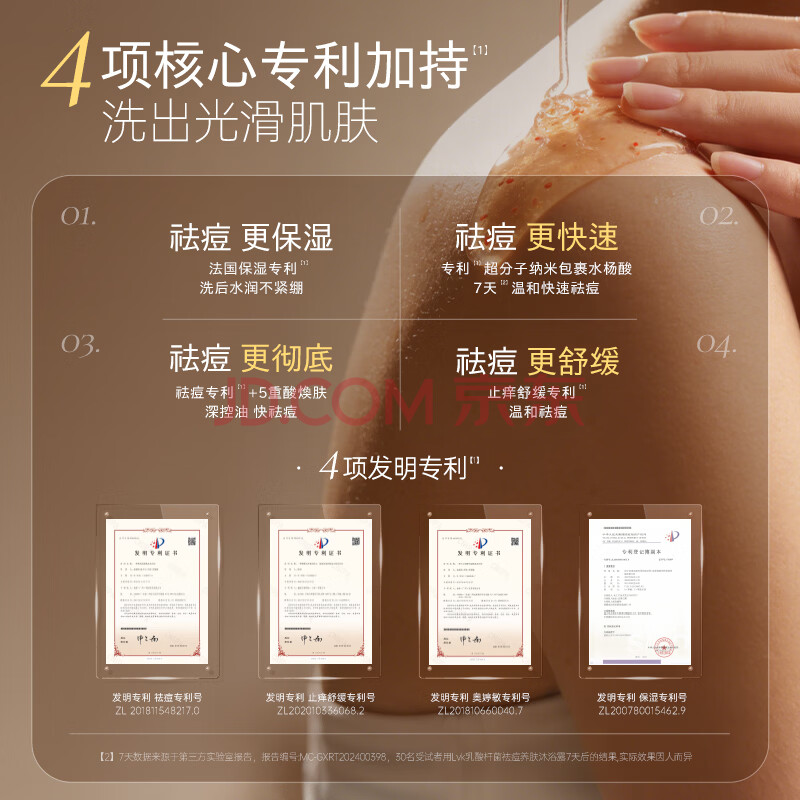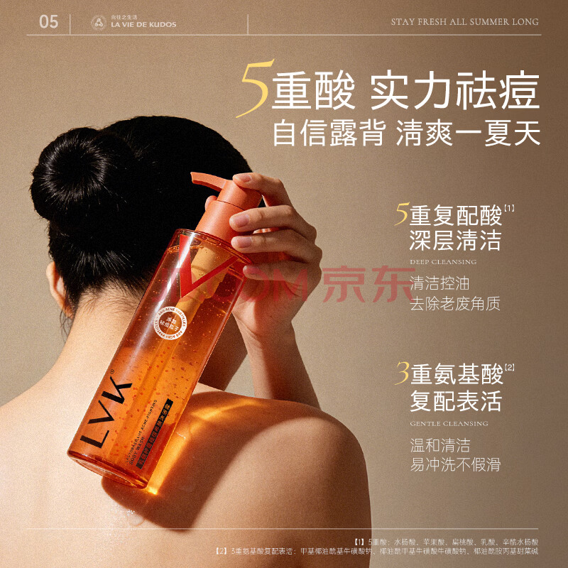 商品相册:LVK水杨酸果酸祛痘沐浴露烟酰胺控油后背痘去角质男女士香味持久2瓶第