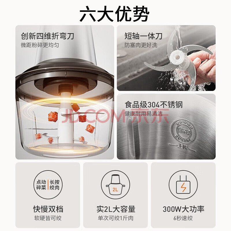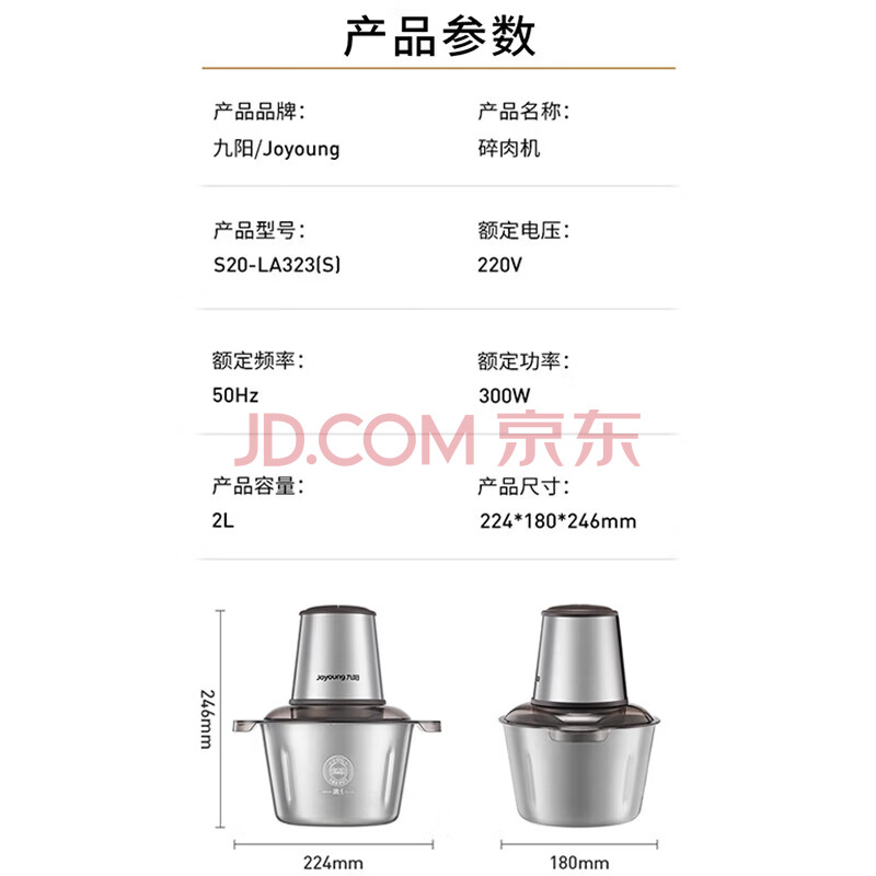 商品相册:九阳(Joyoung)绞肉机家用电动多功能料理机搅拌婴儿辅食机切菜绞馅 2L不锈钢碎肉机S20-LA323(S)第