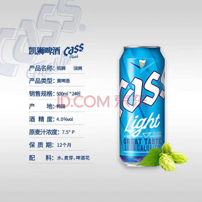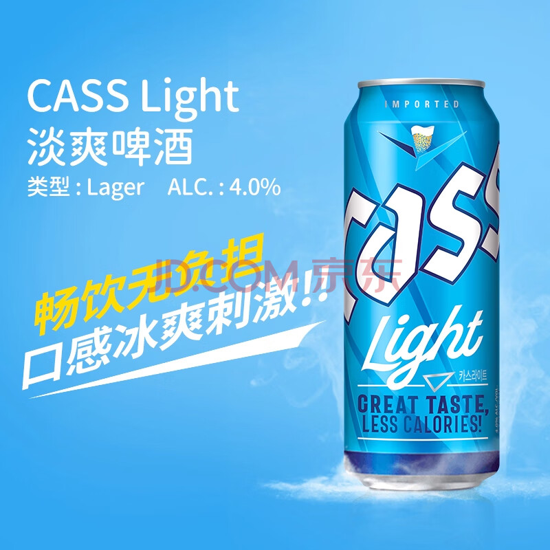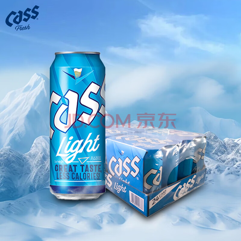 商品相册:凯狮(CASS)啤酒 500ml*24罐 淡爽原味 4度 韩国进口啤酒 冰霜蓝罐 露营聚会第