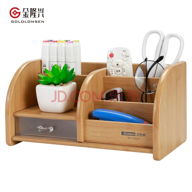 商品相册:金隆兴多功能木质笔筒摆件 办公桌创意ins风简约桌面置物大容量办公文具用品抽屉 C2031第