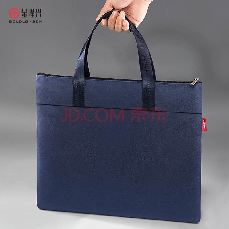 商品相册:金隆兴 A4办公手提会议 加厚大容量商务拉链袋电脑公文包 帆布商务事务包档案袋防水耐磨 6591蓝色第