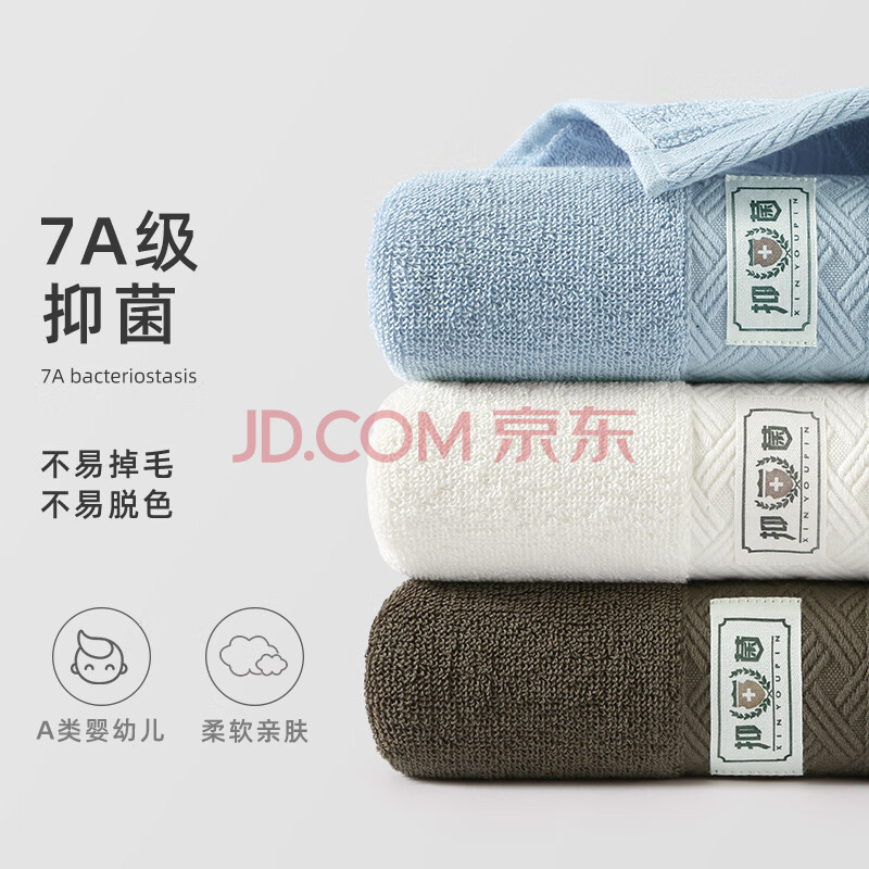 商品相册:洁丽雅7A抗菌防螨纯棉毛巾3条装新疆长绒柔软吸水男女士擦洗脸家用洗澡第