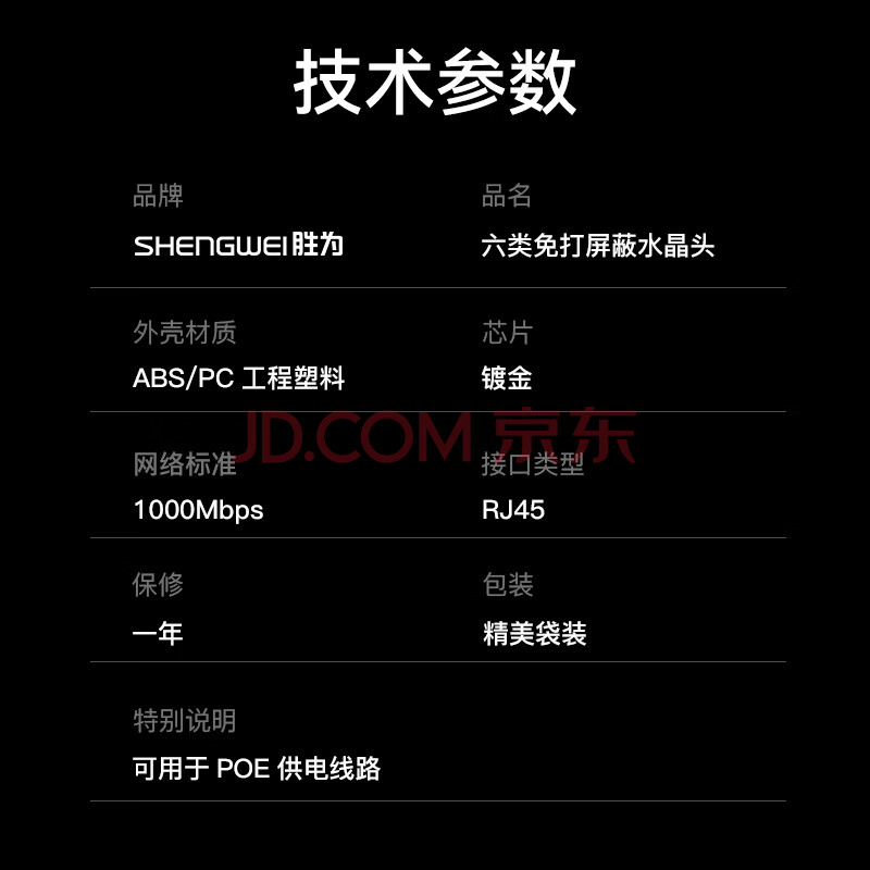 商品相册:胜为 六类免压水晶头 6类千兆网络网线接头 8P8C免工具RJ45电脑网线连接器 网络连接头 单个装CMRJ6001第