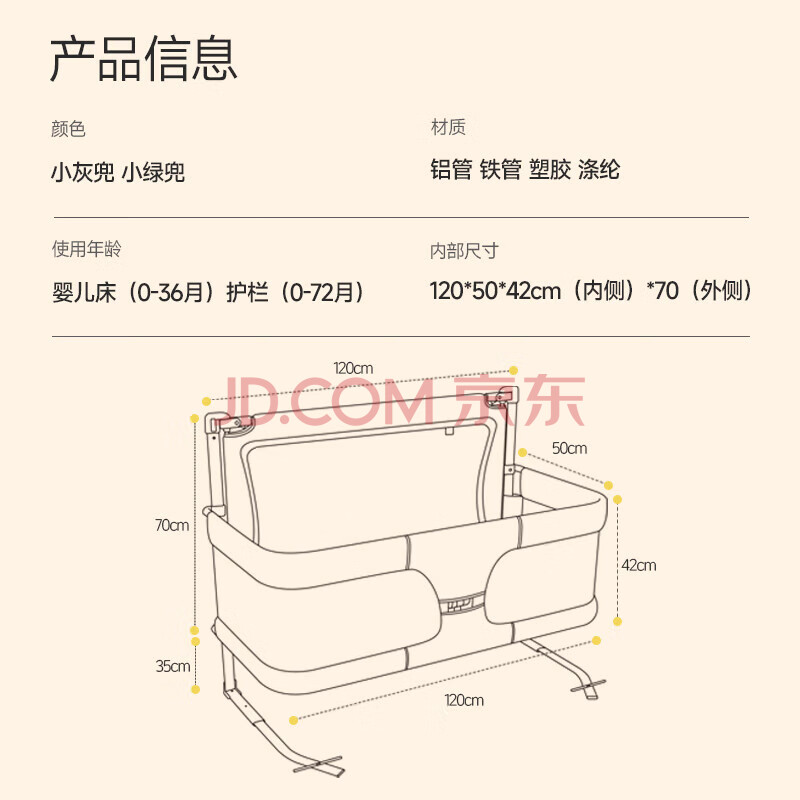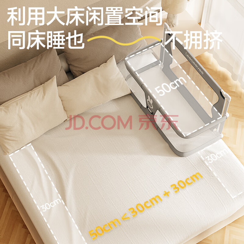 商品相册:leeoeevee鹿儿婴儿床中床拼接可折叠新生儿宝宝床牢易安装防护栏防压米亚白第