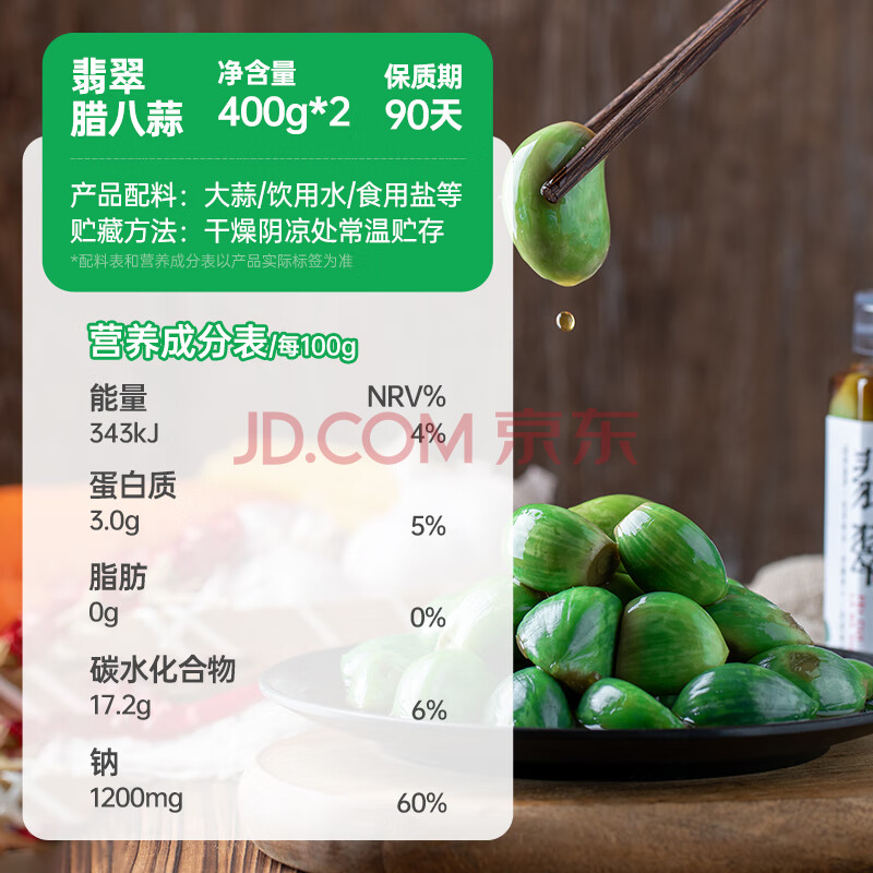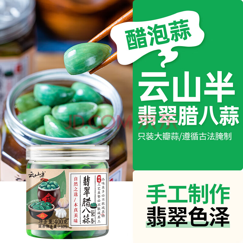商品相册:云山半腊八蒜400g*2罐 绿蒜醋泡蒜糖醋蒜瓣头 翡翠腌蒜下饭酱腌菜泡菜第