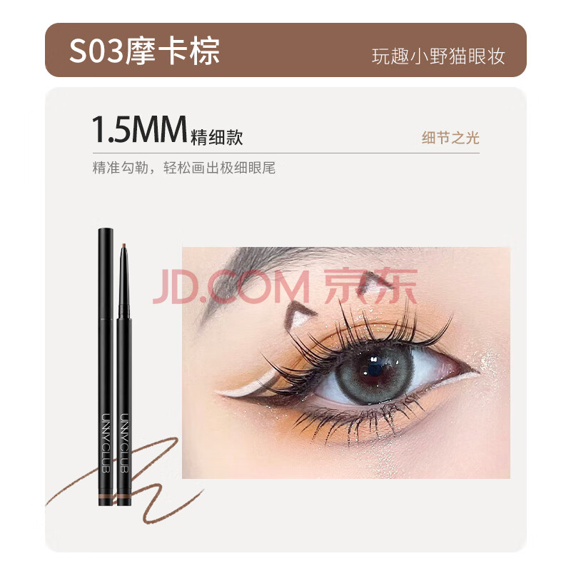 商品相册:悠宜(unny club)精细眼线胶笔S03摩卡棕色0.05g1.5mm(极细不晕染防揉搓新手)第