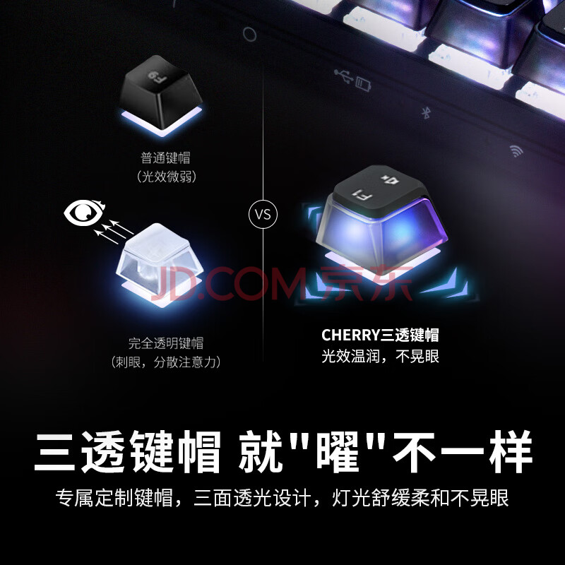 商品相册:CHERRY樱桃MX8.2Xaga曜石无线键盘蓝牙三模机械键盘办公键盘电竞游戏兼容MAC系统 三透PBT键帽客制化键盘第1张/共7