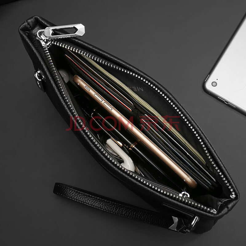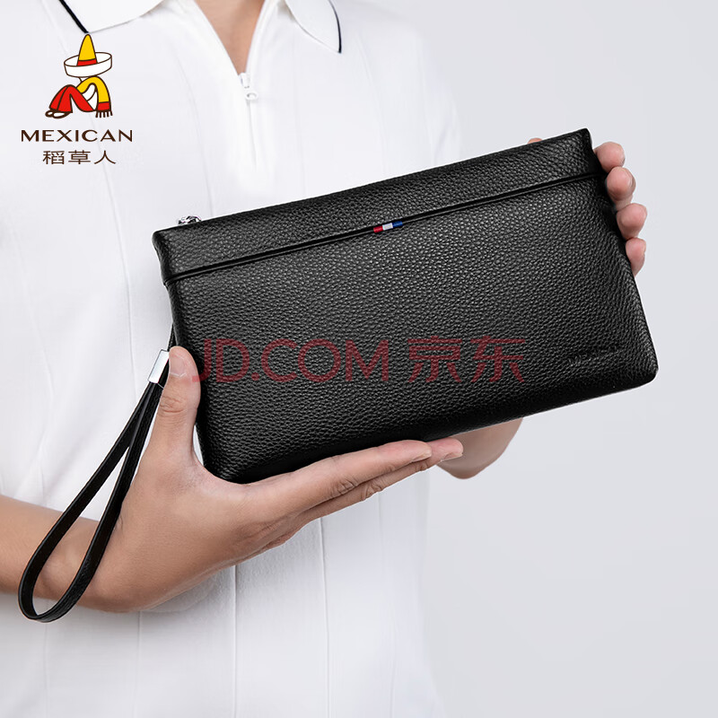 商品相册:稻草人男士手包头层牛皮手拿包多卡位拉链信封包手夹钱包生日礼物第1张/共8