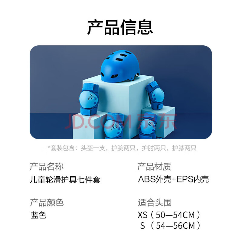 商品相册:京东京造儿童轮滑护具 头盔护膝护肘护掌 自行车滑板平衡车护具蓝色XS第